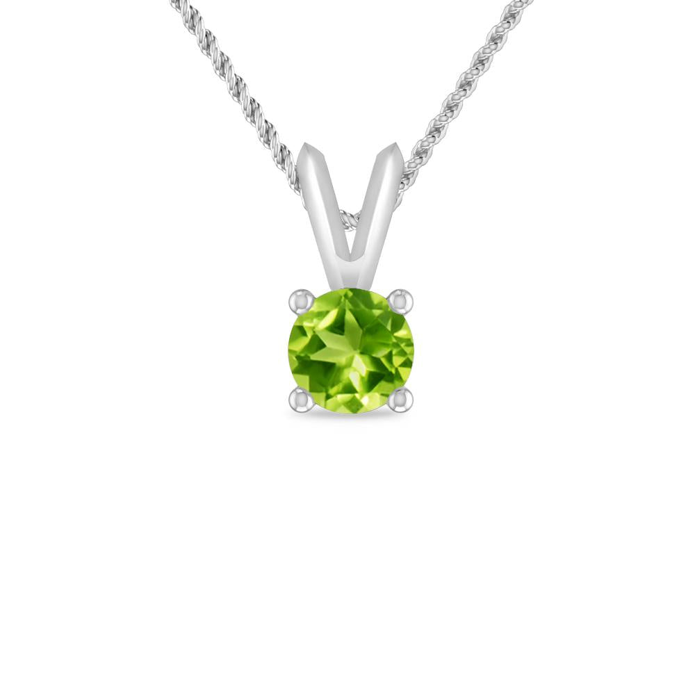 Delicate Round Pink Tourmaline Solitaire Pendant Held By a V-Bail In 14K White Gold
