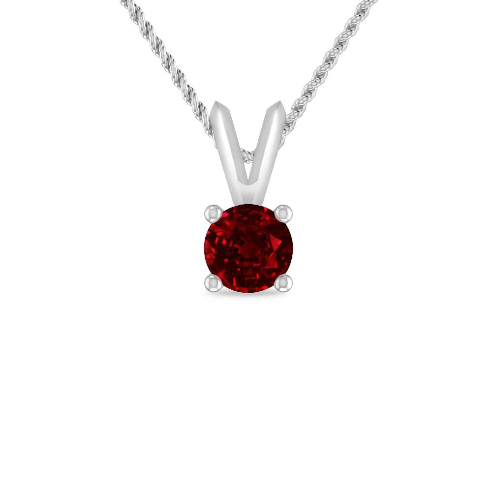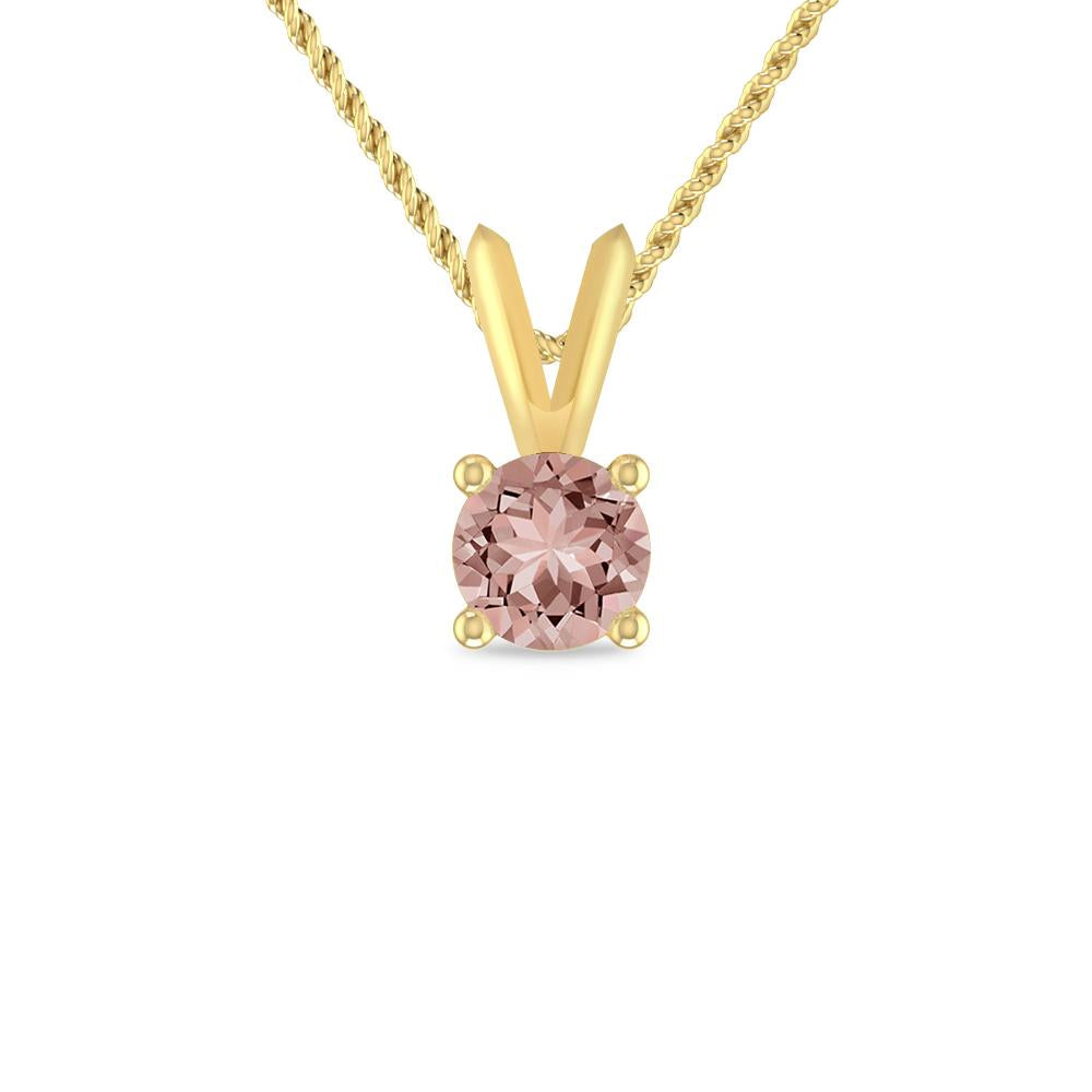 Delicate Round Pink Tourmaline Solitaire Pendant Held By a V-Bail In 14K White Gold