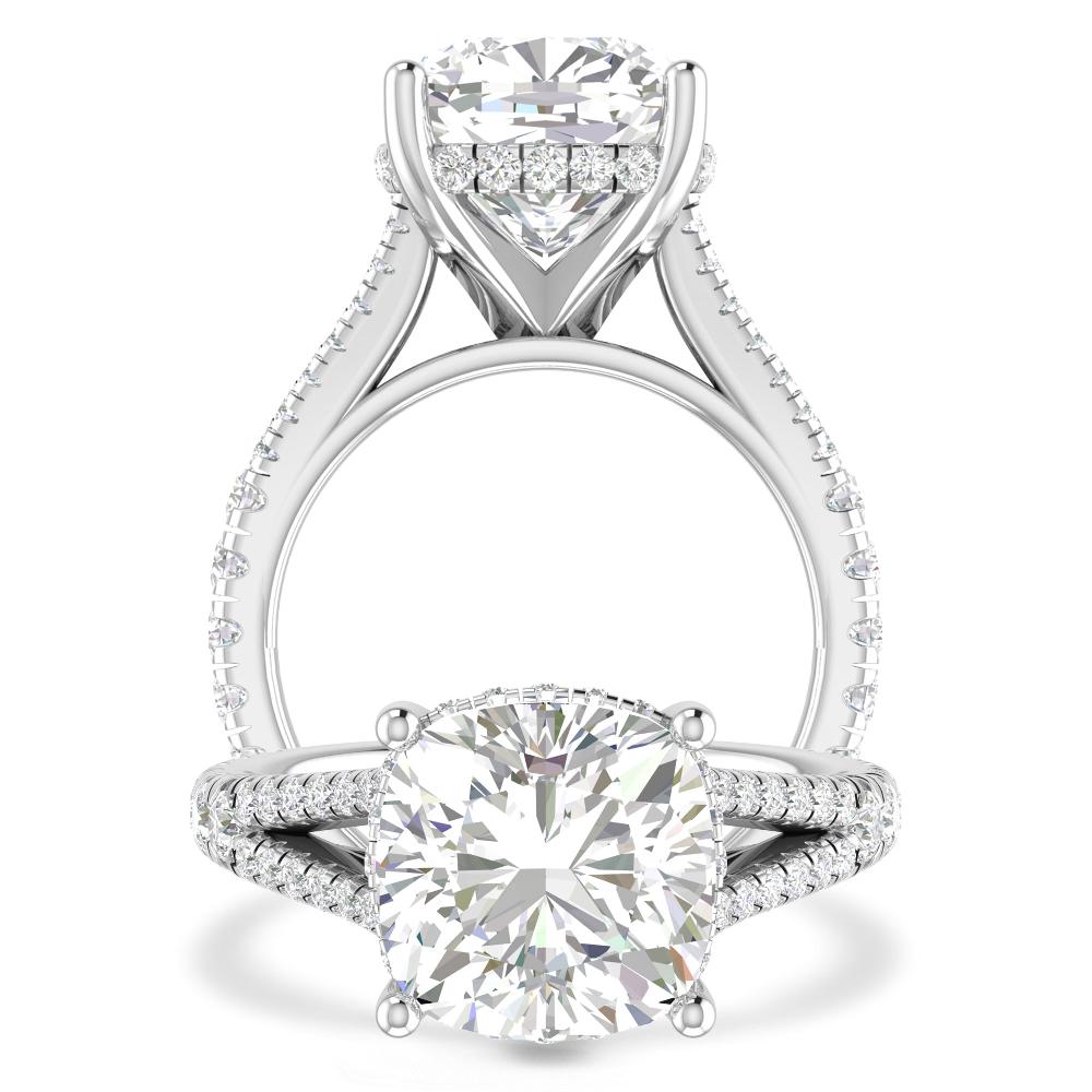 1 1/2 ctw Split Shank Sparkling Cushion Diamond Engagement Ring With Pavé-Set Accents In 14K White Gold
