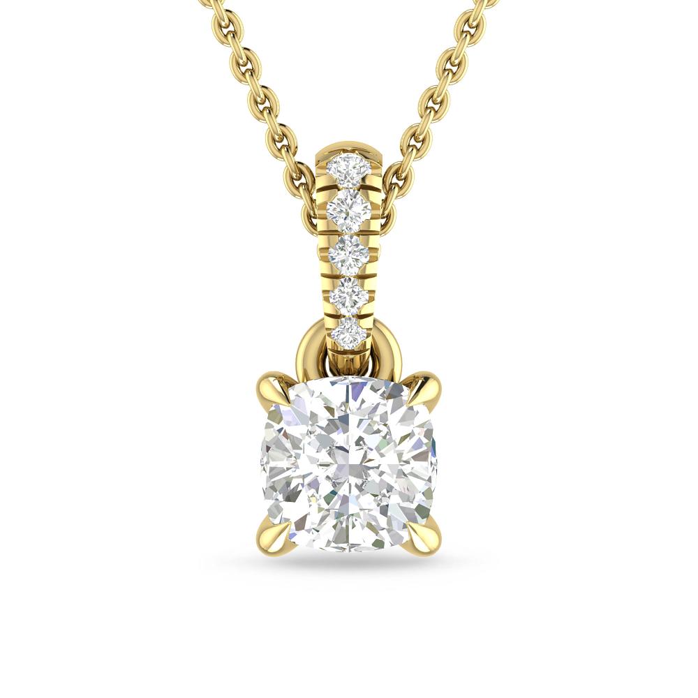 1 1/20 ctw Claw-Set Cushion Diamond Hidden Halo Pendant With Single Accented Bail In 14K White Gold
