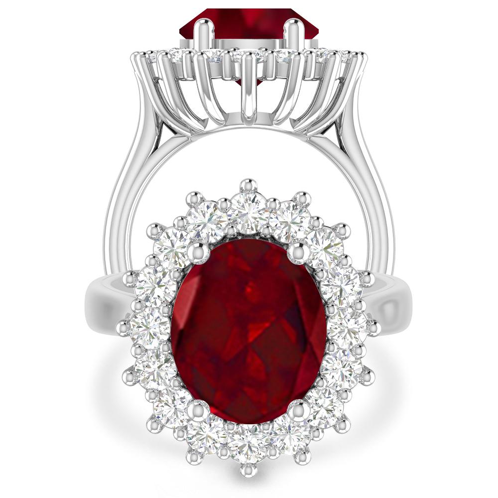7 1/6 ctw Vintage Oval Ruby Halo Engagement Ring With Sleek Tapered Shank In 14K White Gold