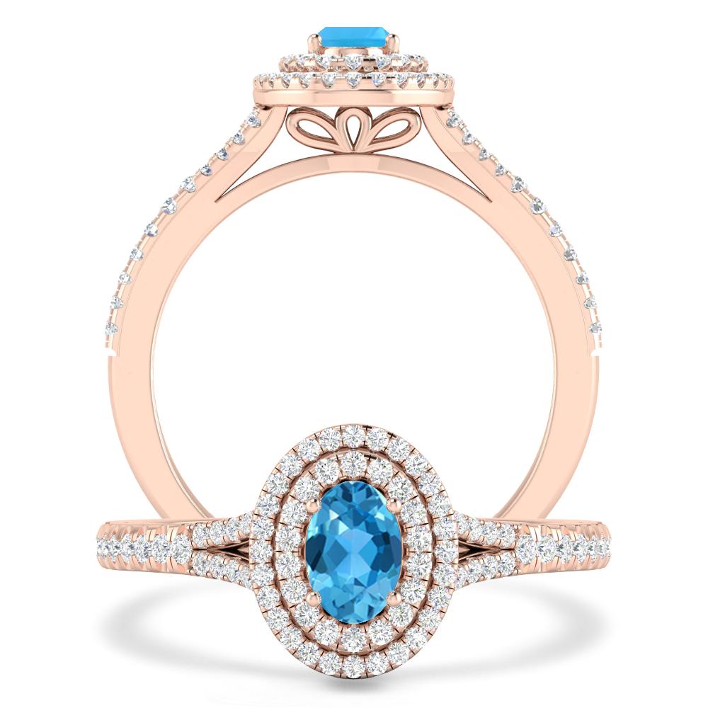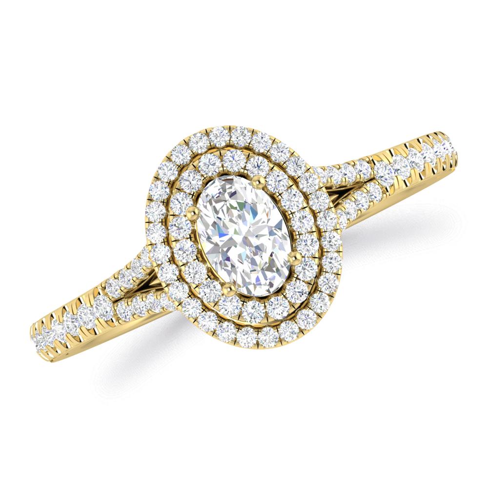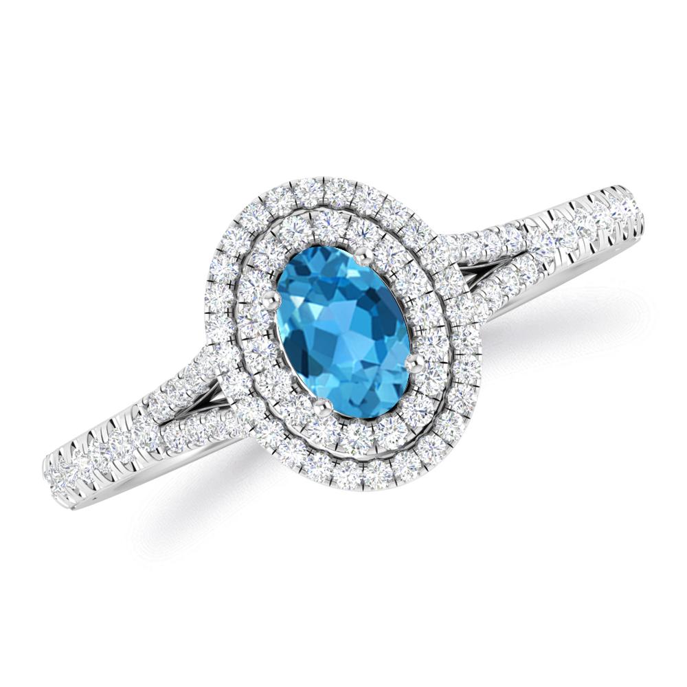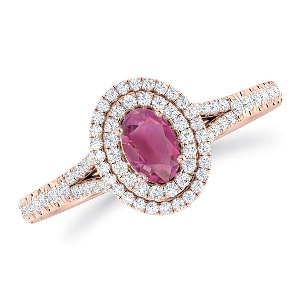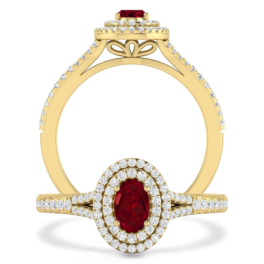 7/8 ctw Oval Ruby Pave Set Double Halo Engagement Ring With Split Accented Shank In 14K White Gold