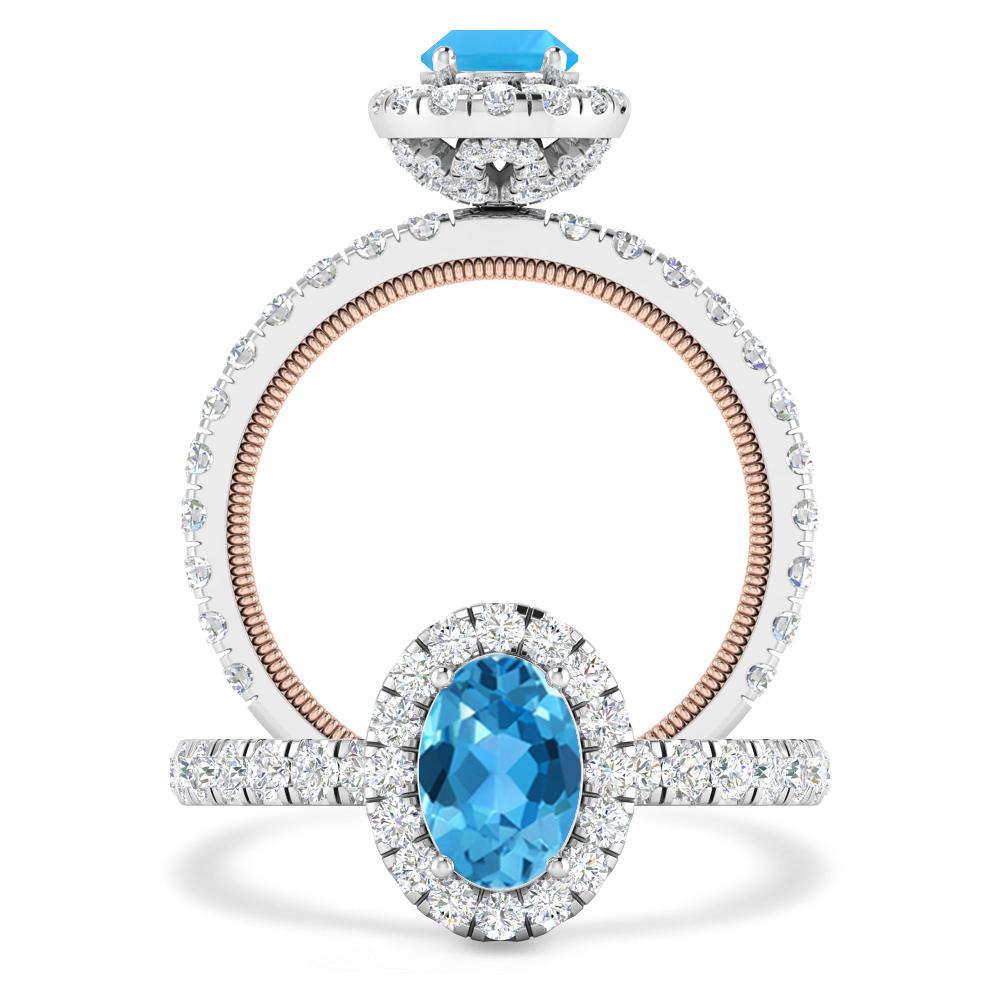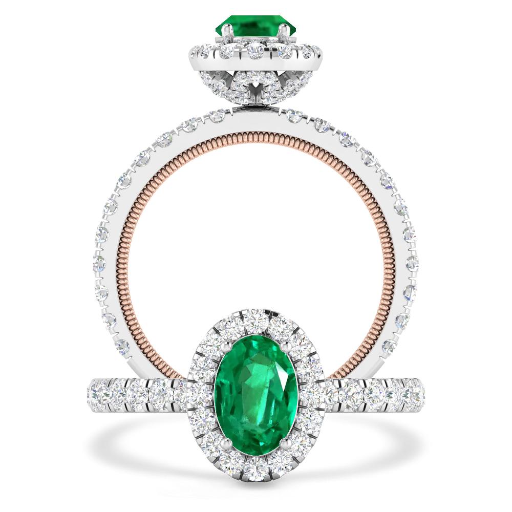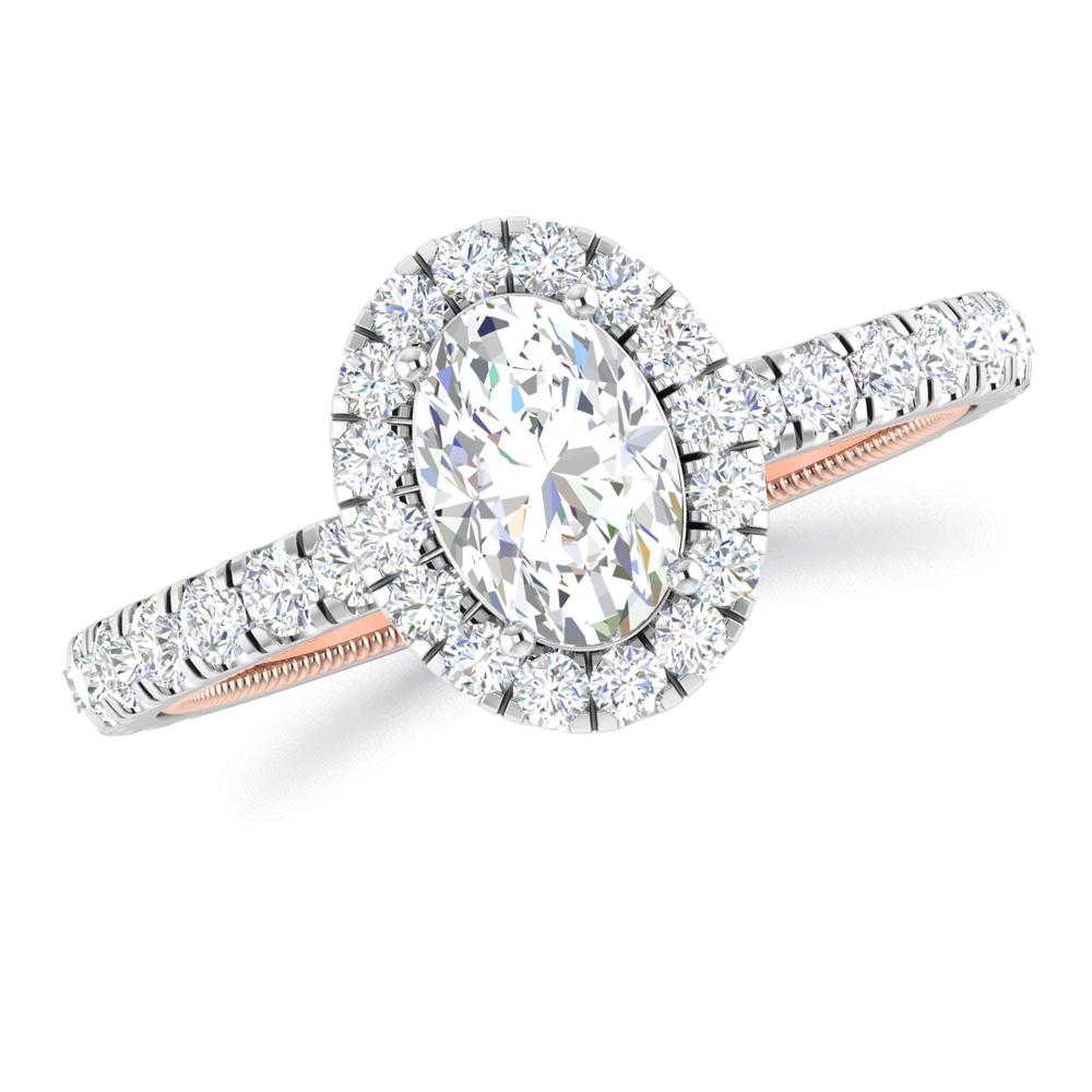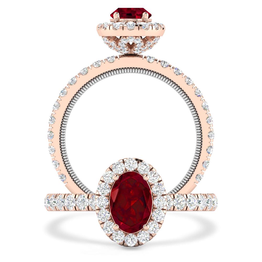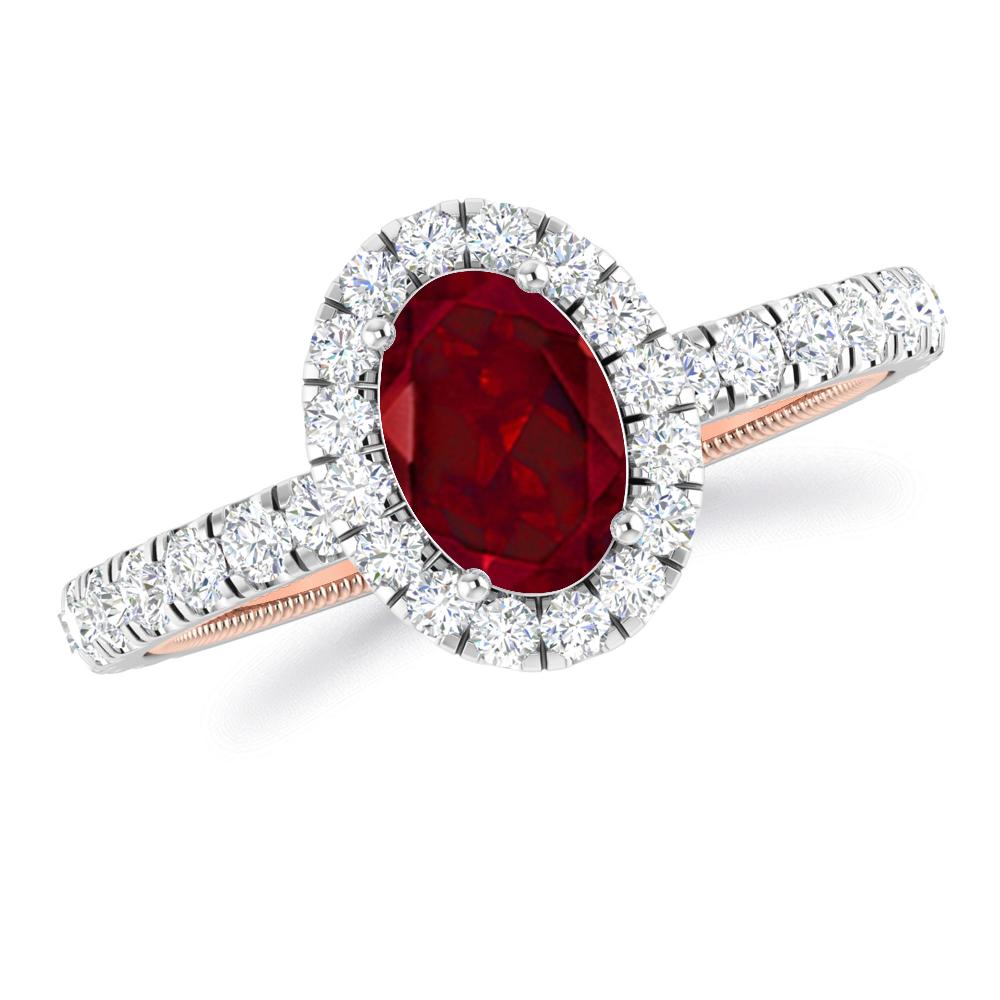 2 ctw Oval Ruby Halo Engagement Ring With Hidden Accented Petal Detail & Milgrain In 14K White Gold