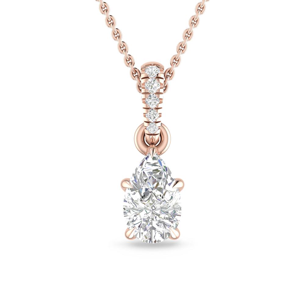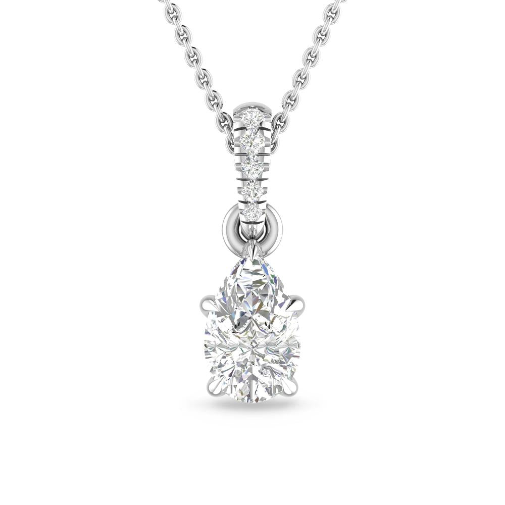 1 1/20 ctw Claw-Set Pear Diamond Hidden Halo Pendant With Single Accented Bail In 14K White Gold