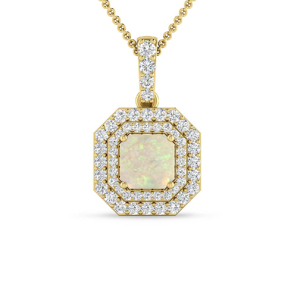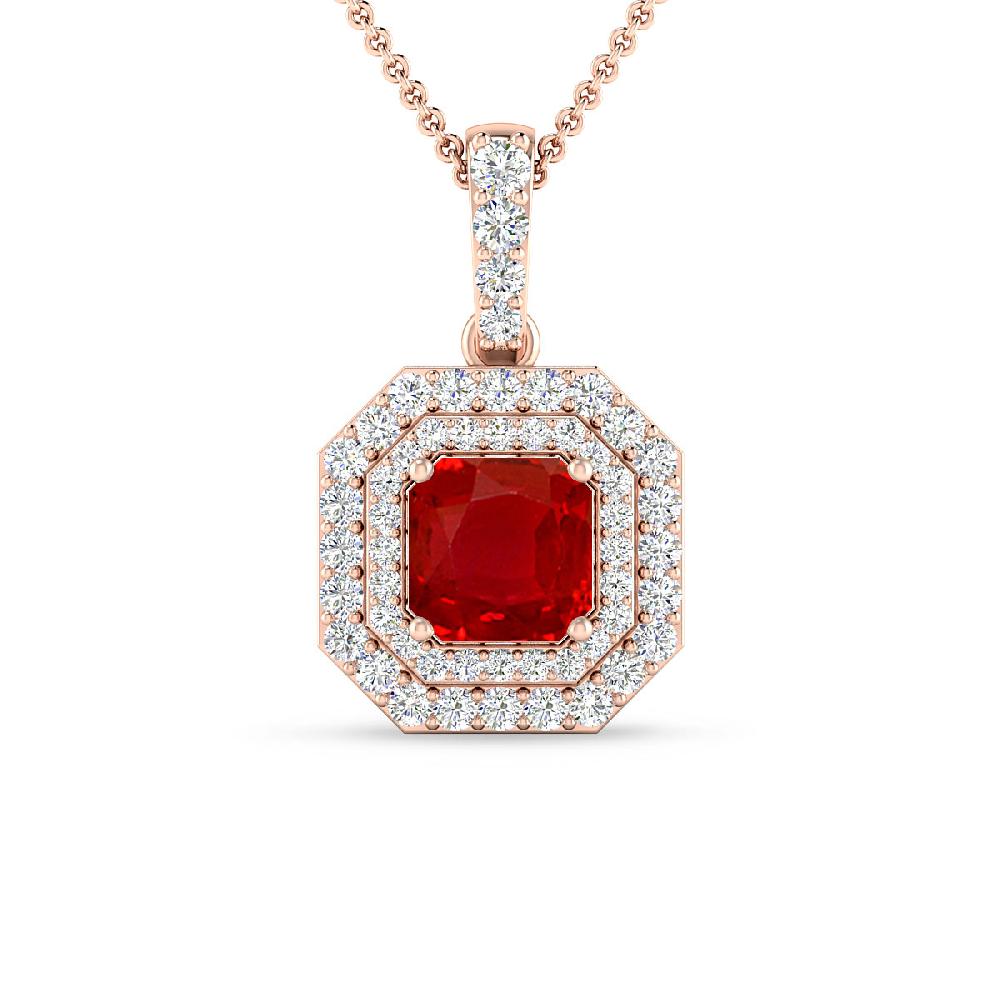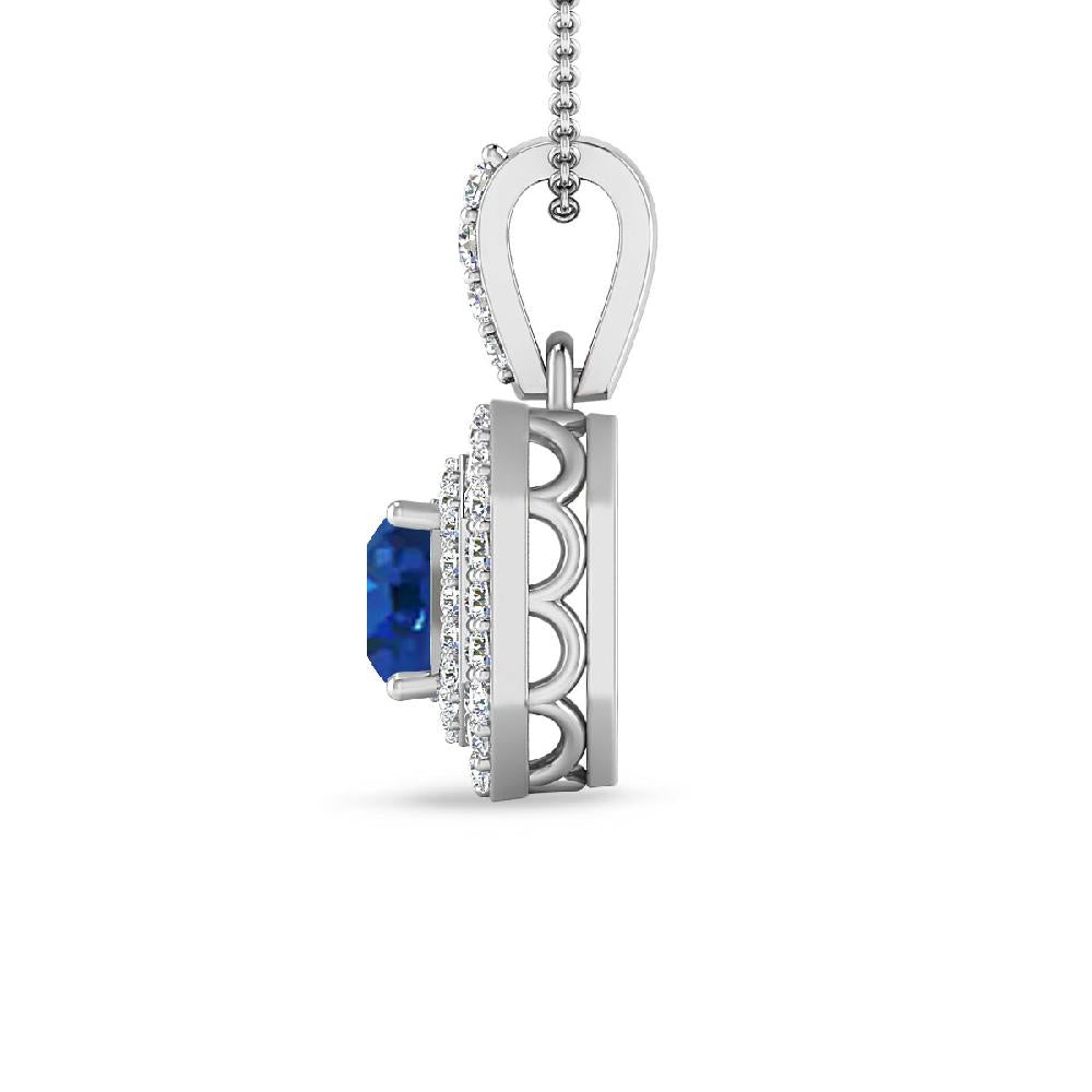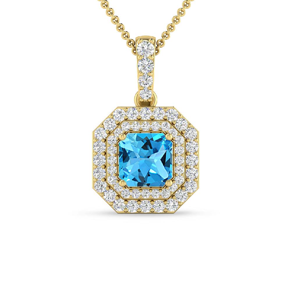 14K White Gold 1 3/4 ct Princess Cut Double Halo Diamond Pendant
