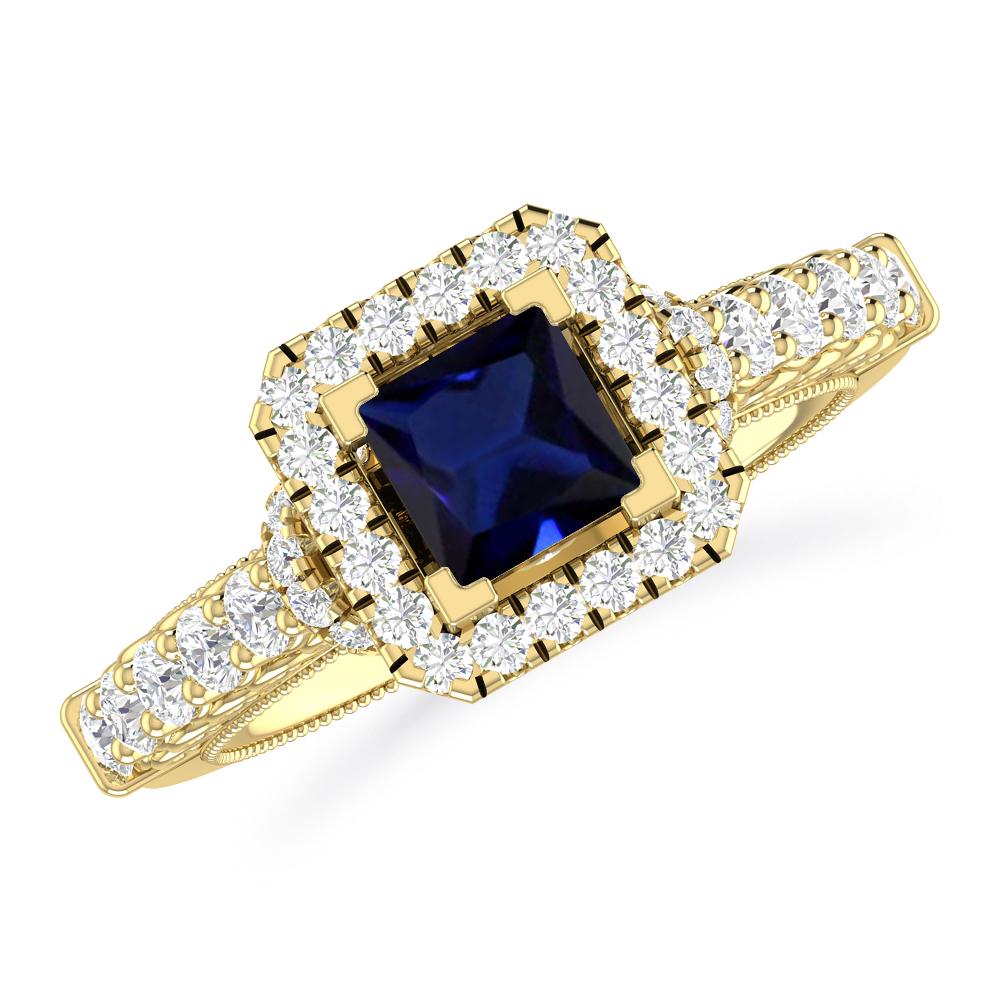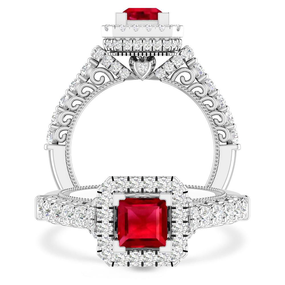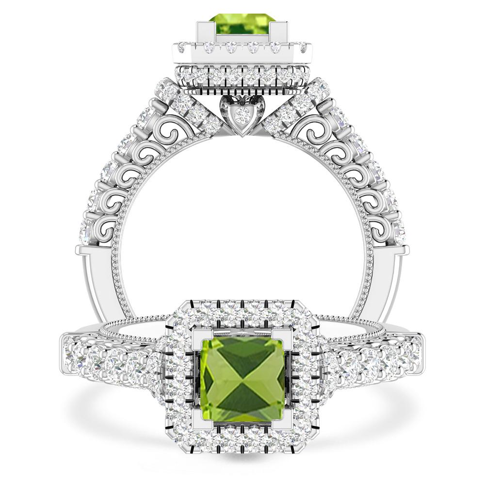 1 5/8 ctw Vintage Style Princess Emerald Double Halo Engagement Ring With Cascading Scroll Filigree Details In 14K White Gold
