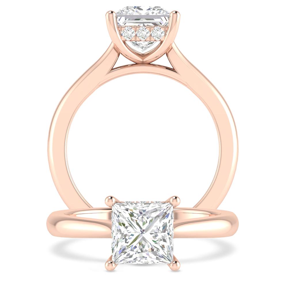 1 1/3 ctw Princess Diamond Solitaire Hidden Halo Engagement Ring With Plain Tapered Shank In 14K White Gold