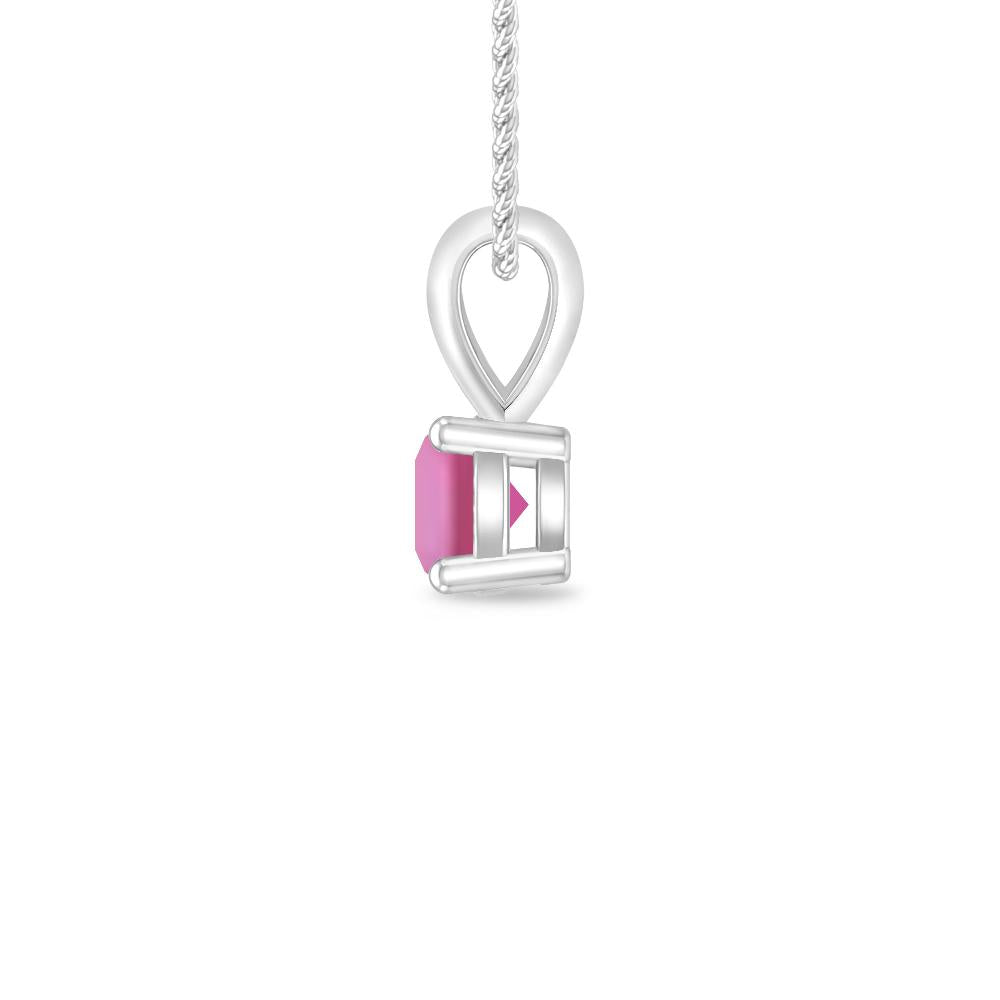 Delicate Round Pink Tourmaline Solitaire Pendant Held By a V-Bail In 14K White Gold