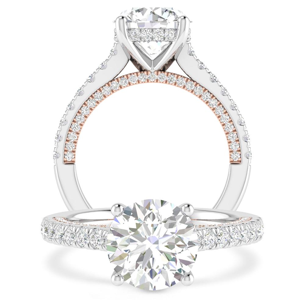 Luxurious 2 1/3 ct Round Solitaire Diamond Bridal Set In 14K White Gold Diamond Accented Wedding Band With Bridge Stone & Hidden Halo
