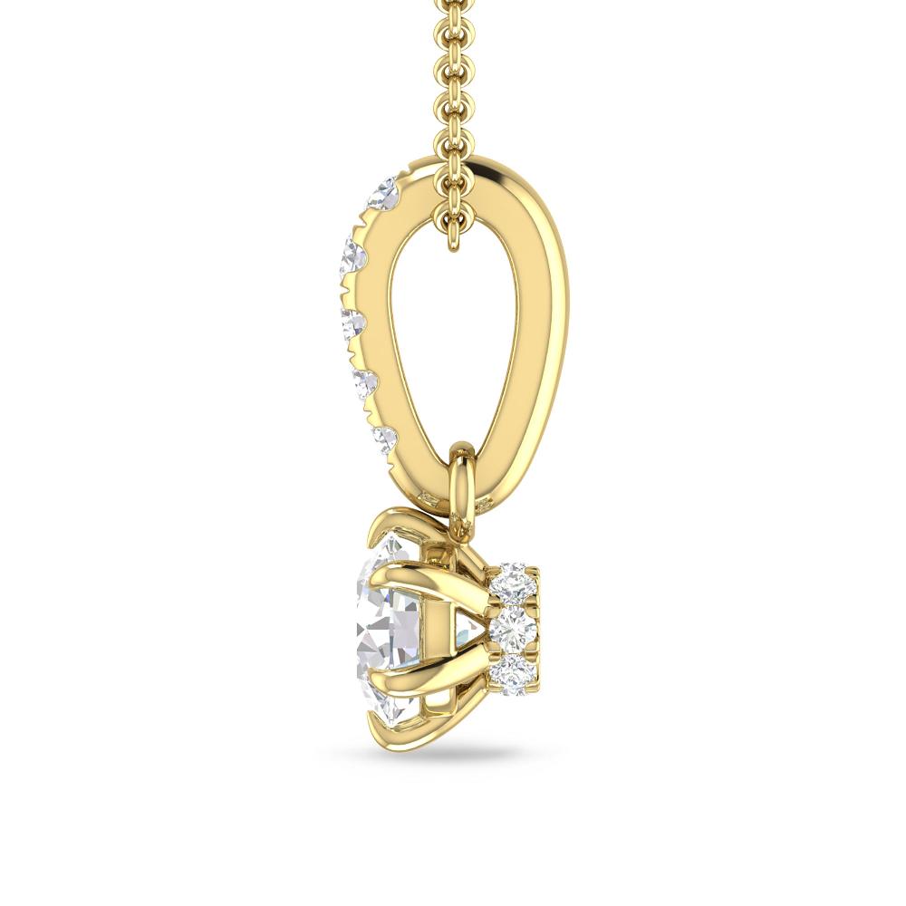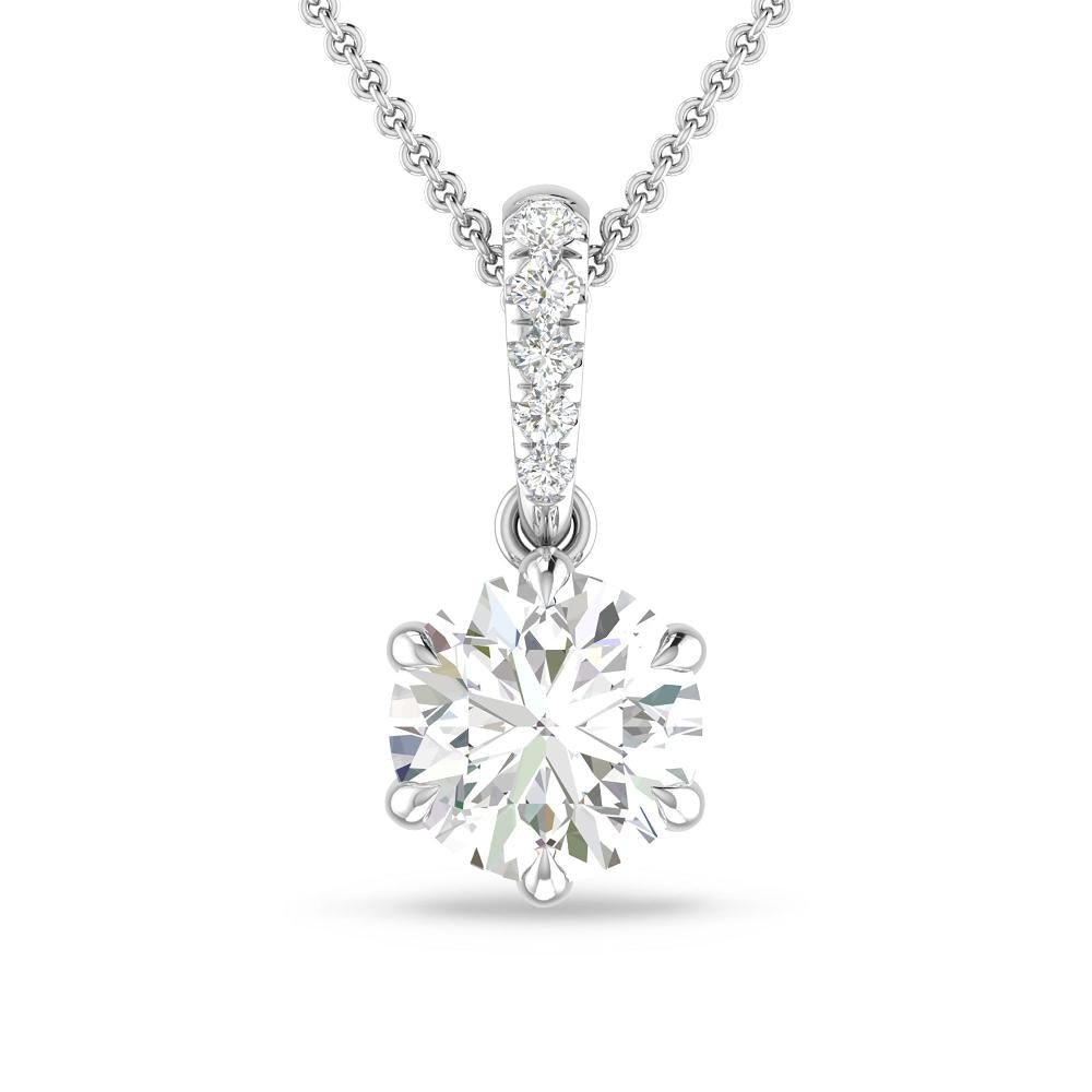 1 1/10 ctw Claw-Set Round Diamond Hidden Halo Pendant With Single Accented Bail In 14K White Gold