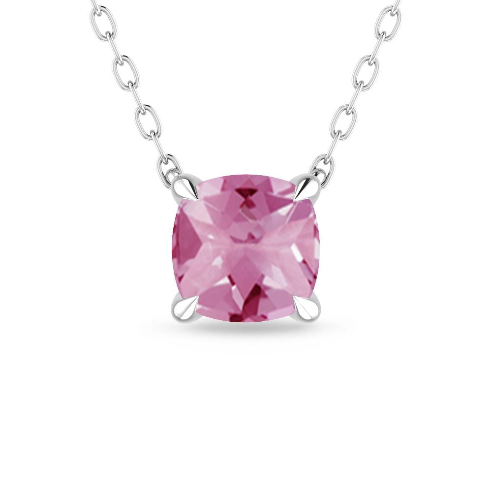 1 1/4 ctw Claw-Set Hidden Halo Cushion Ruby Solitaire Pendant In 14K White Gold