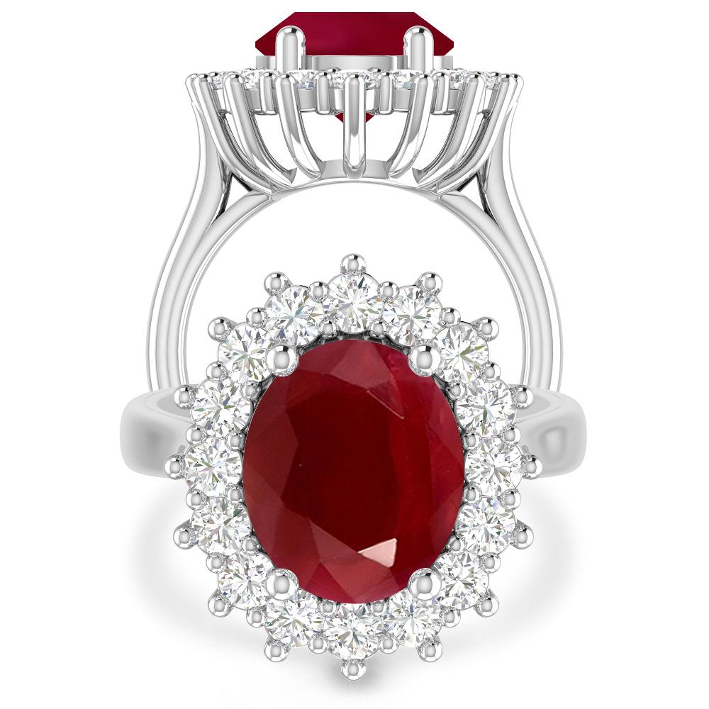 7 1/6 ctw Vintage Oval Ruby Halo Engagement Ring With Sleek Tapered Shank In 14K White Gold