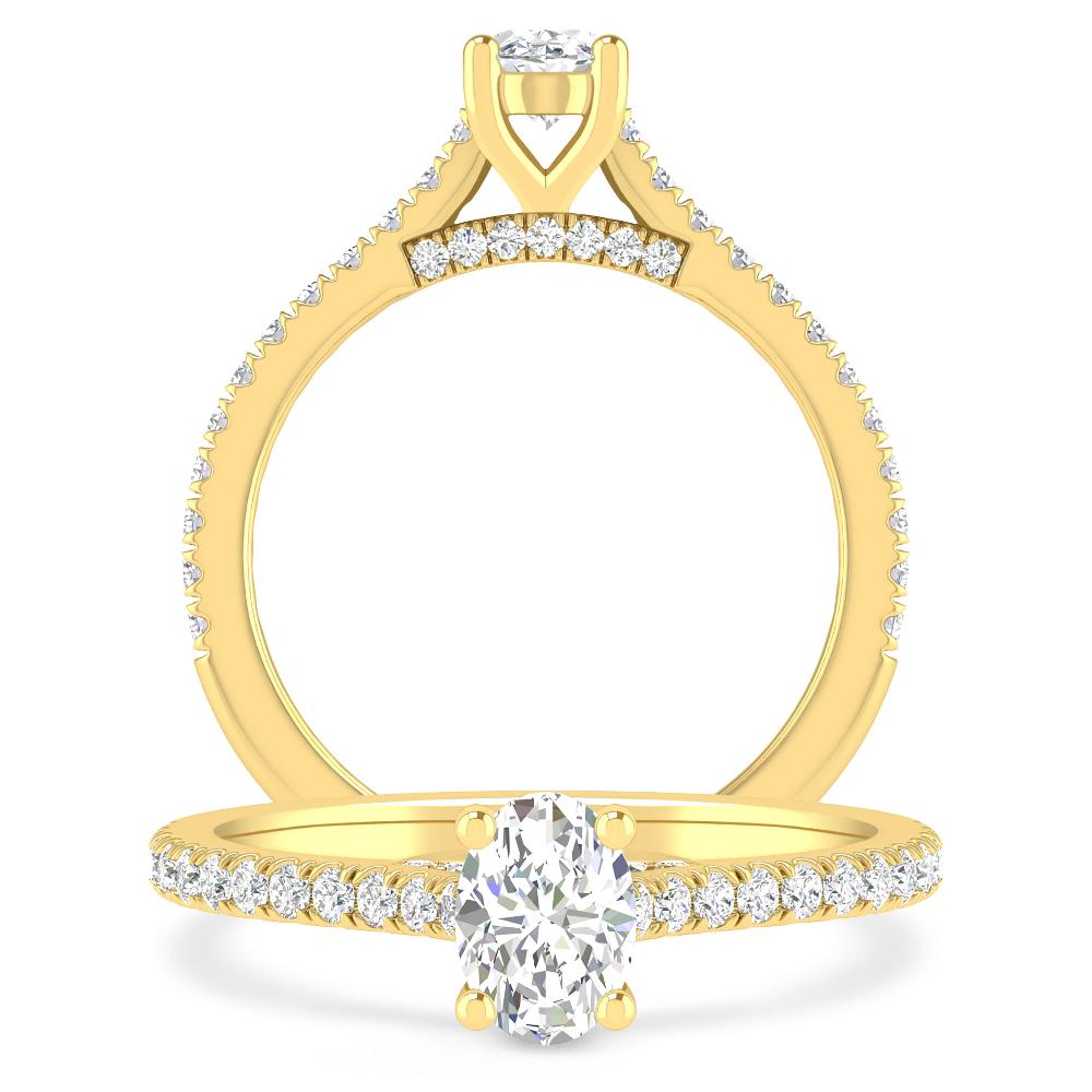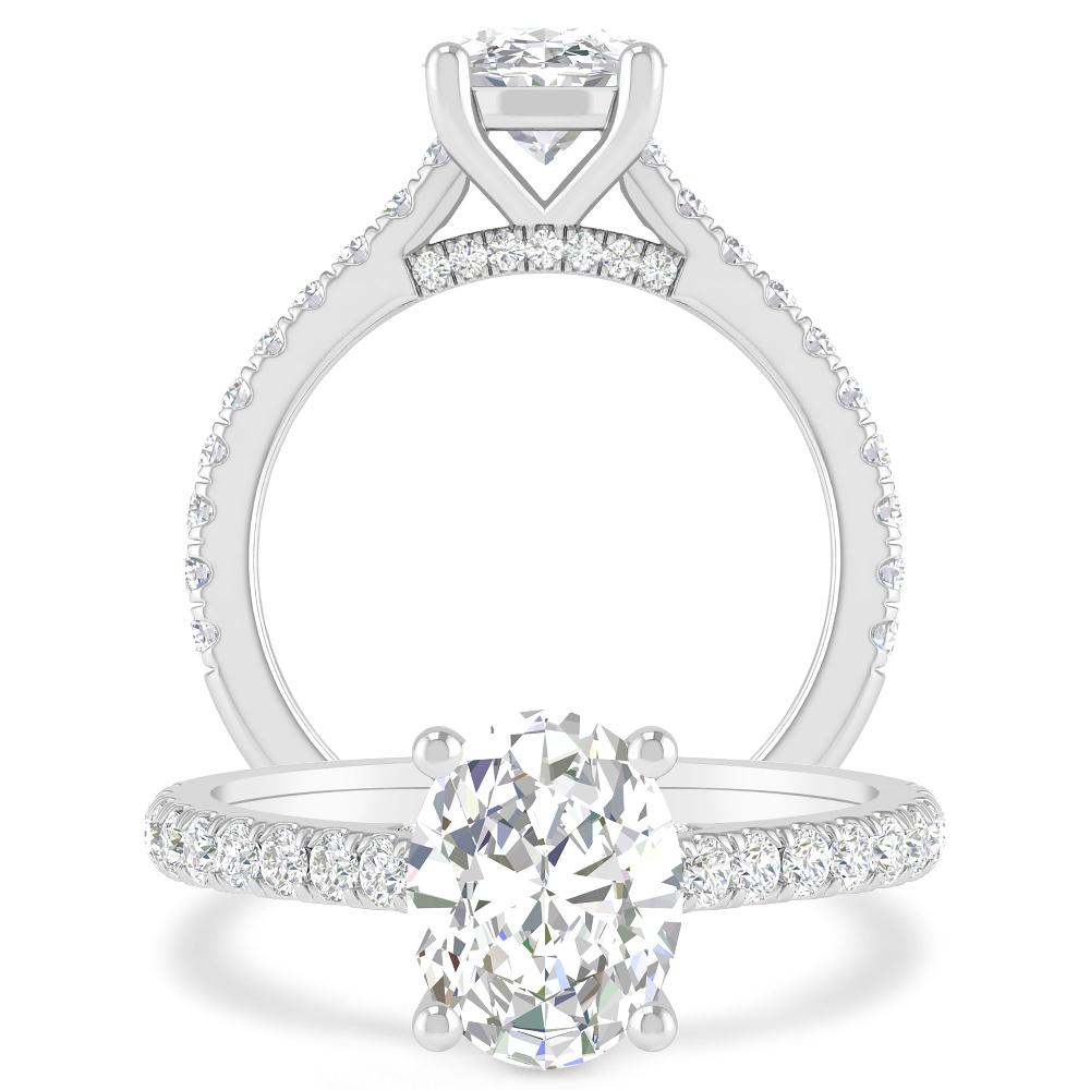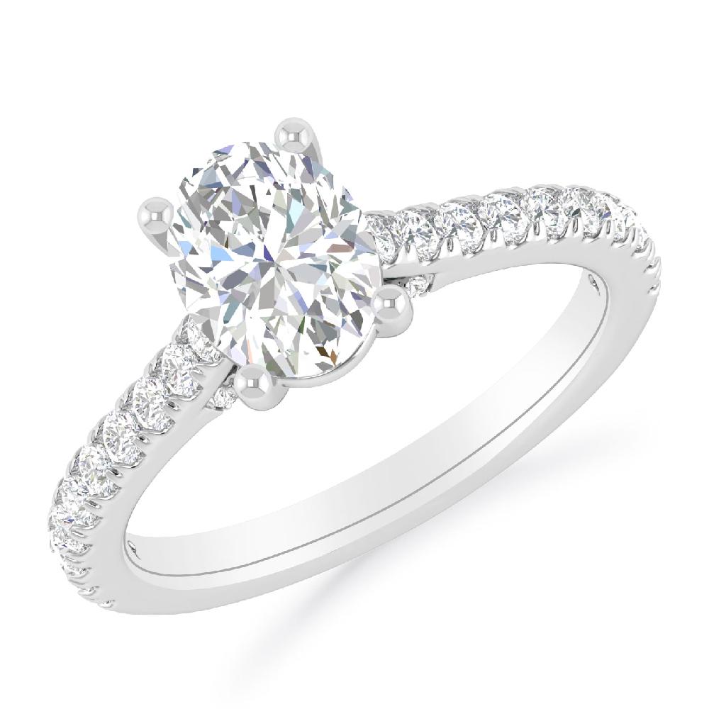 Classic Oval 1 ct Diamond Ring In 14K White Gold With A Sparkling Accented Shank And Bridge