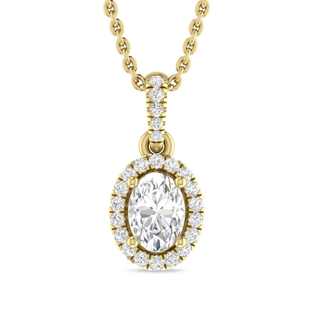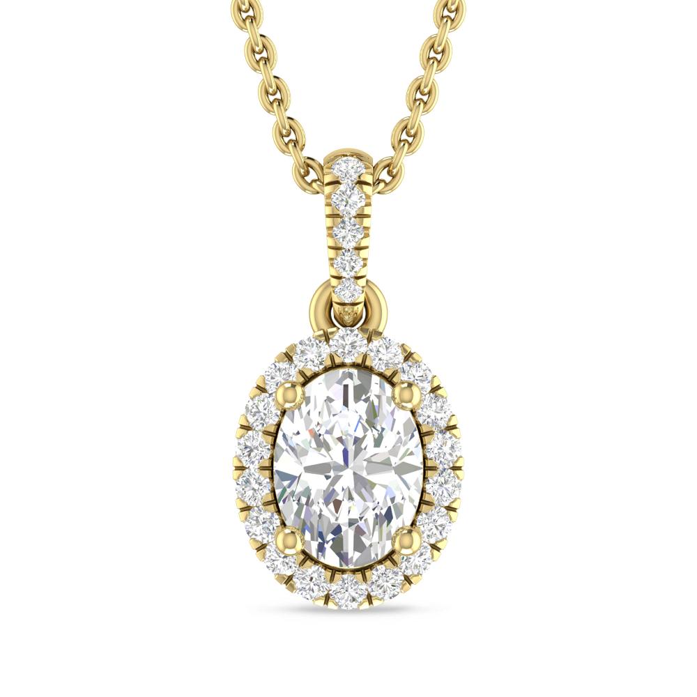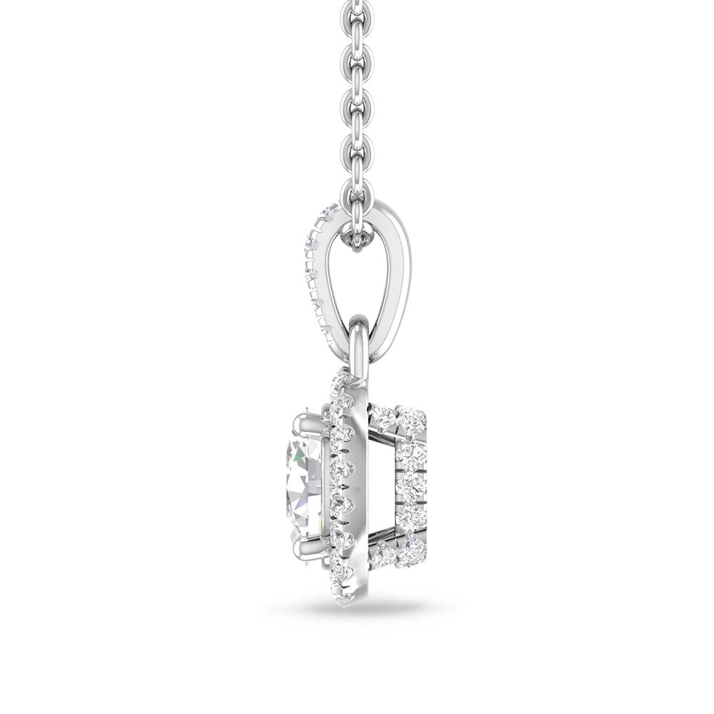 14K White Gold Oval 1 1/50 ctw Diamond Halo Pendant With Accented Single Bail