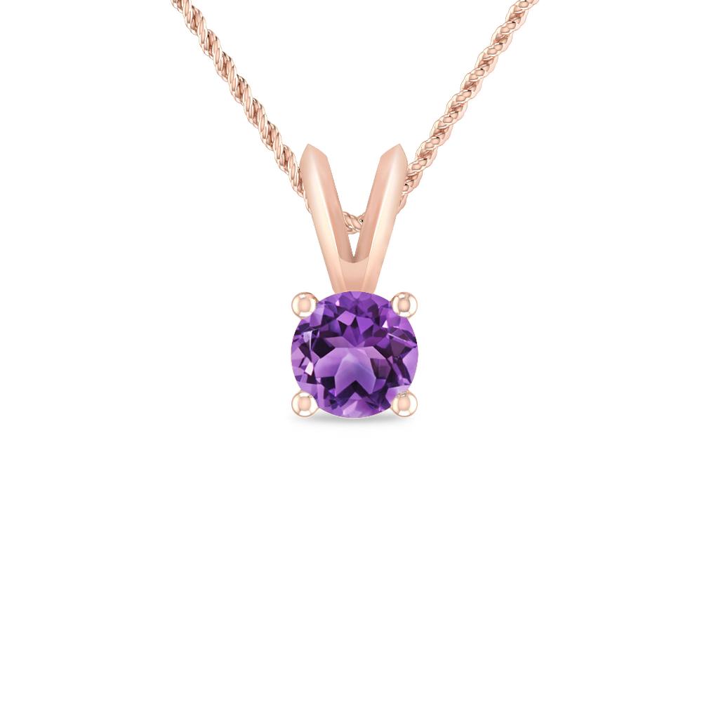 Delicate Round Pink Tourmaline Solitaire Pendant Held By a V-Bail In 14K White Gold