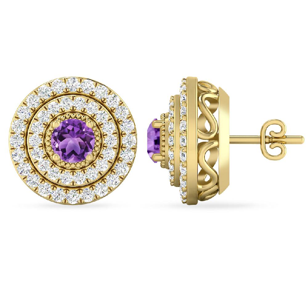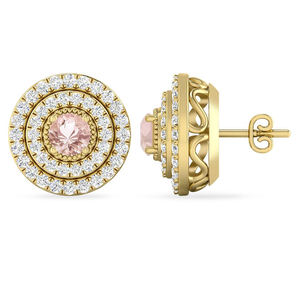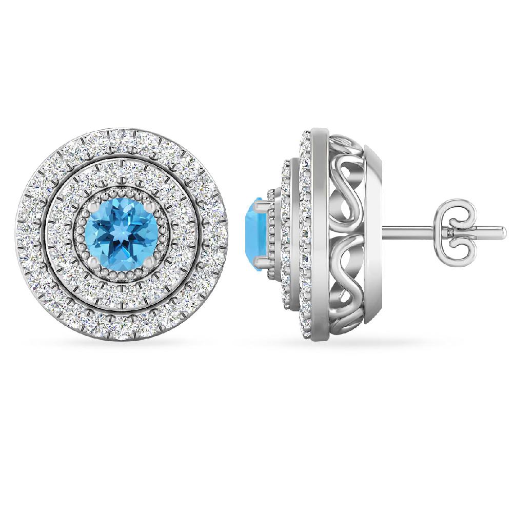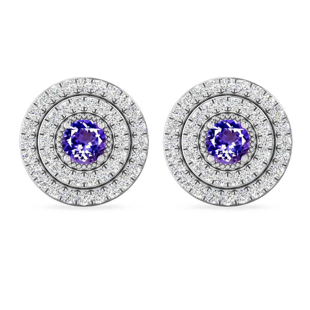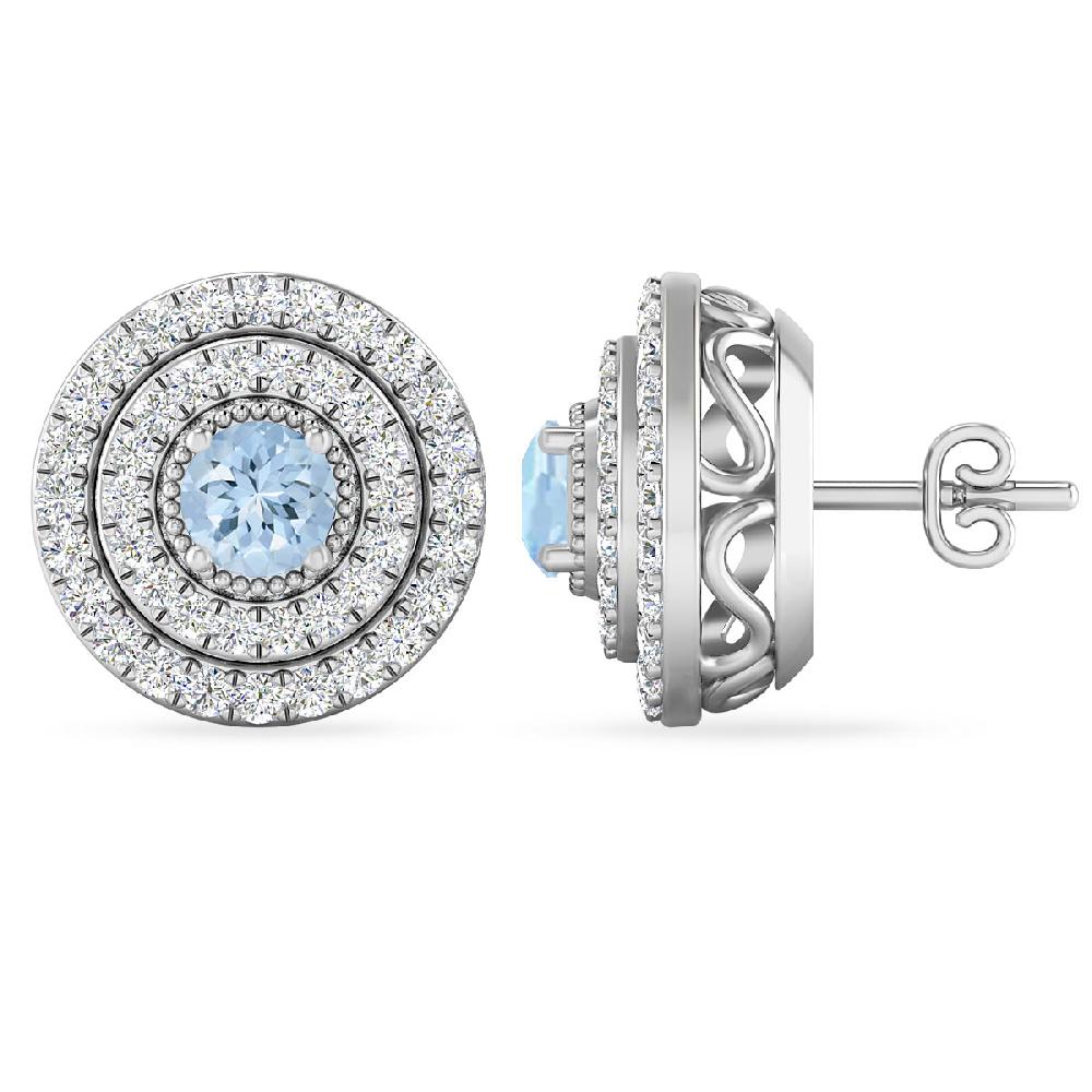 1/2 ctw Round Diamond Double Halo Stud Earrings With Milgrain In 14K White Gold