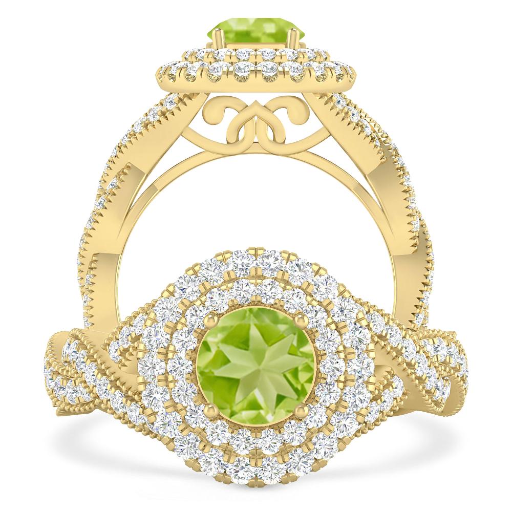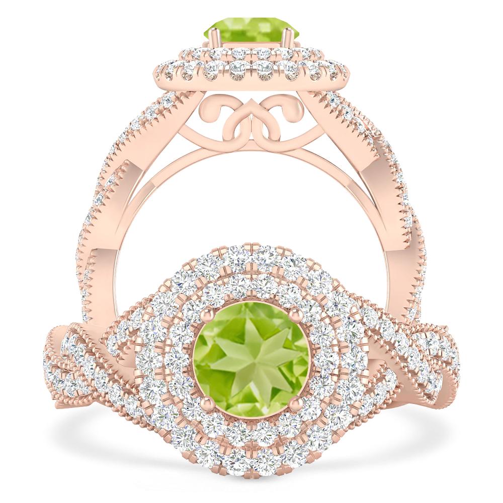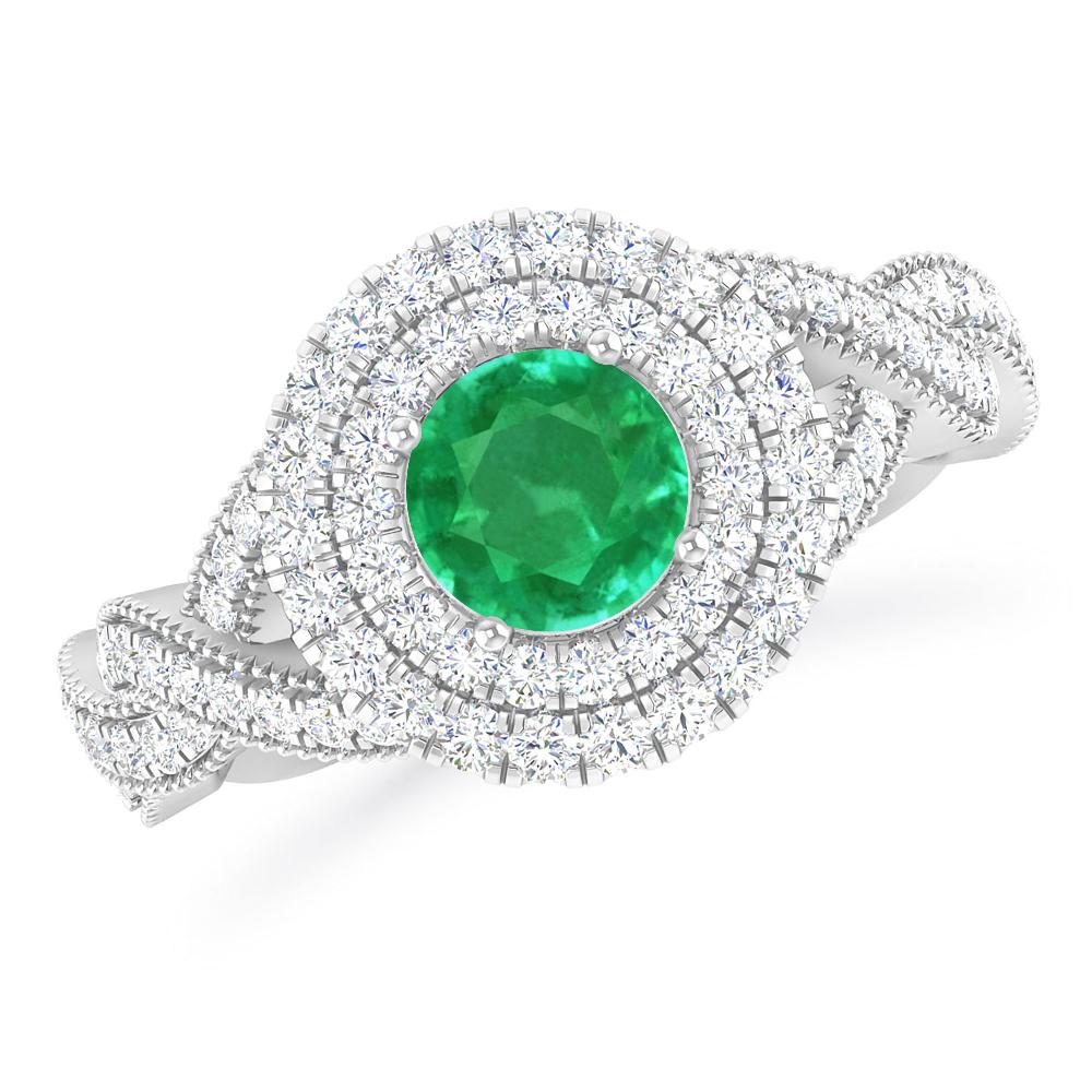 1 1/2 ctw Round Emerald Double Halo Engagement Ring With Accented Twisted Shank In 14K White Gold