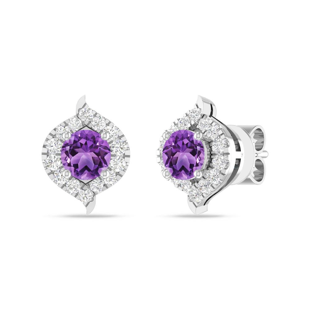 1 7/8 CTW Round Emerald Halo Earrings With Diamond Accented In 14K White Gold