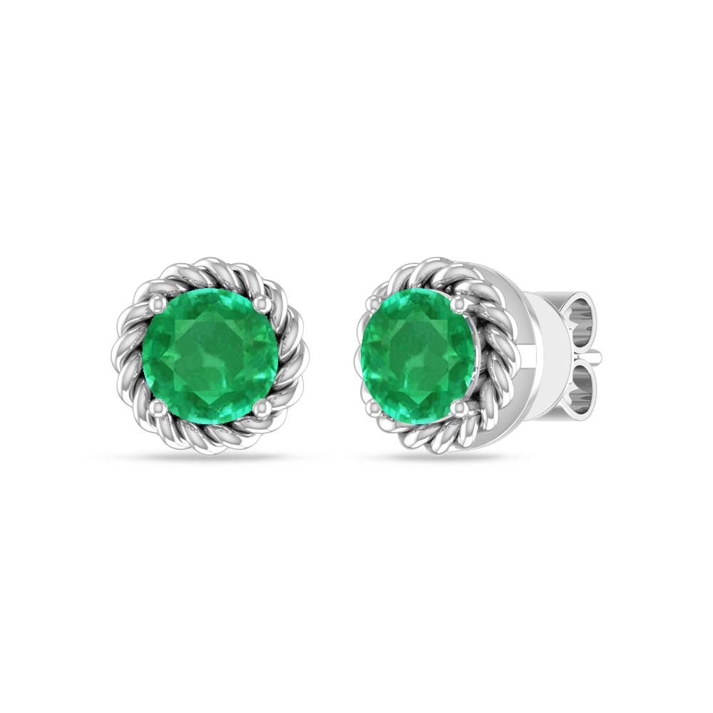 1 CTW Prong Setting Round Emerald Studs Earrings In 14K White Gold