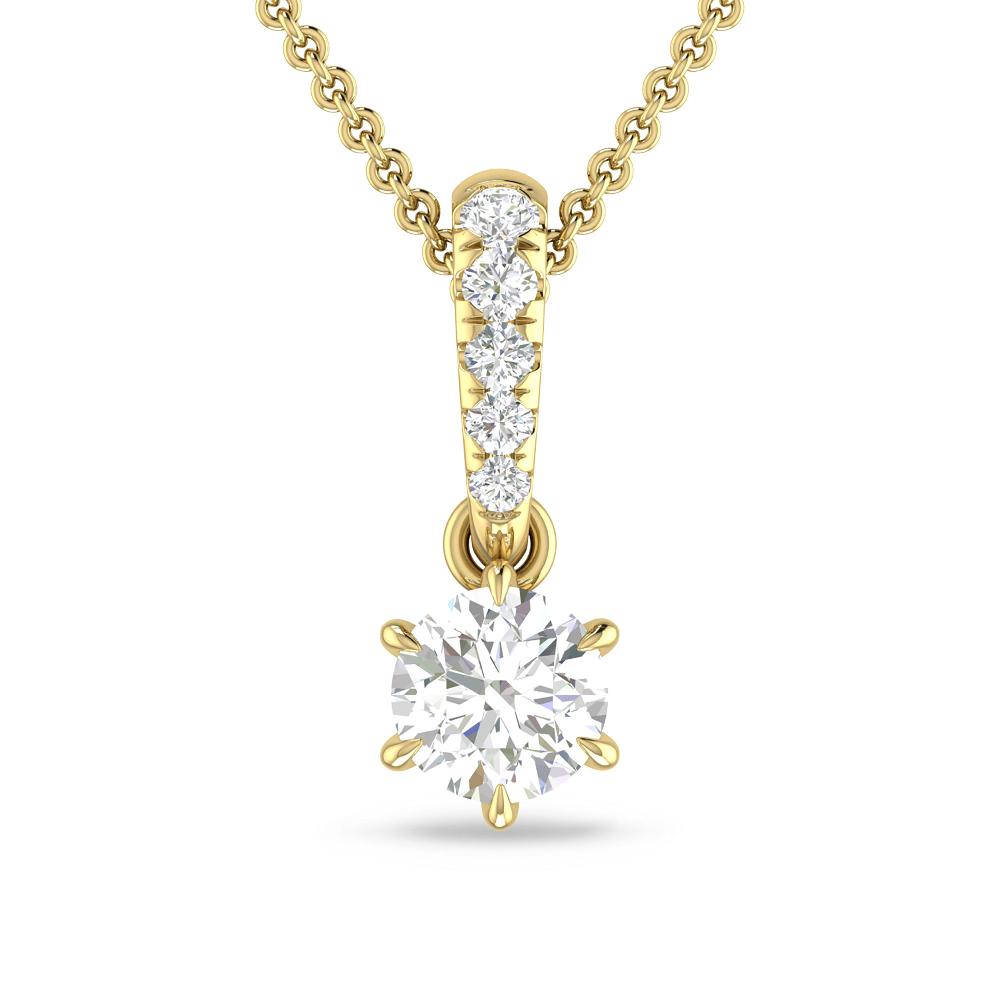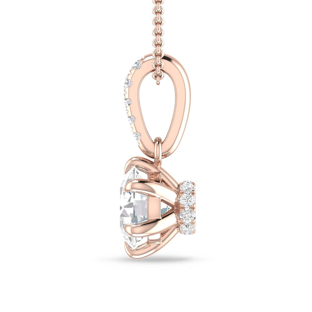 1 1/10 ctw Claw-Set Round Diamond Hidden Halo Pendant With Single Accented Bail In 14K White Gold