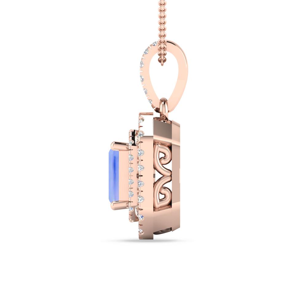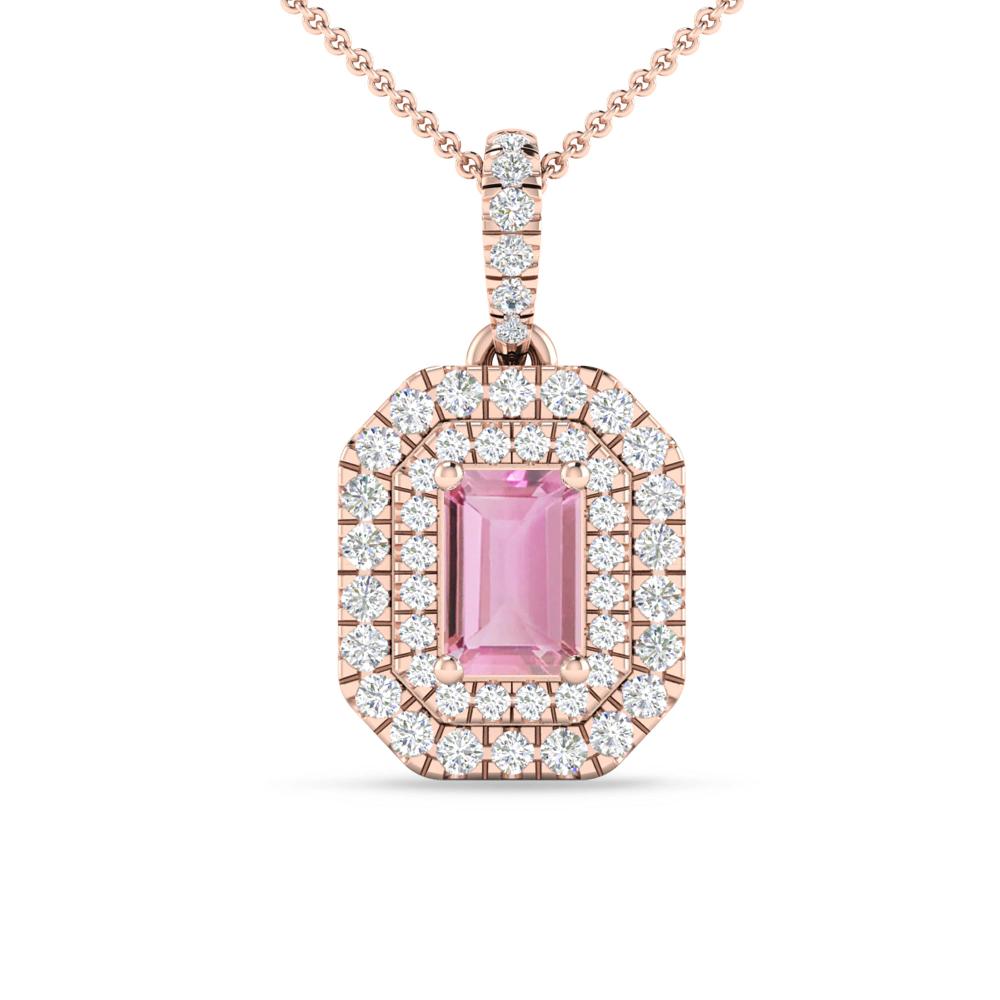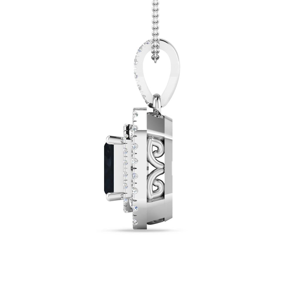 1 1/5 ctw Emerald Cut Sapphire Double Halo Pendant With Diamond Accented Bail In 14K White Gold
