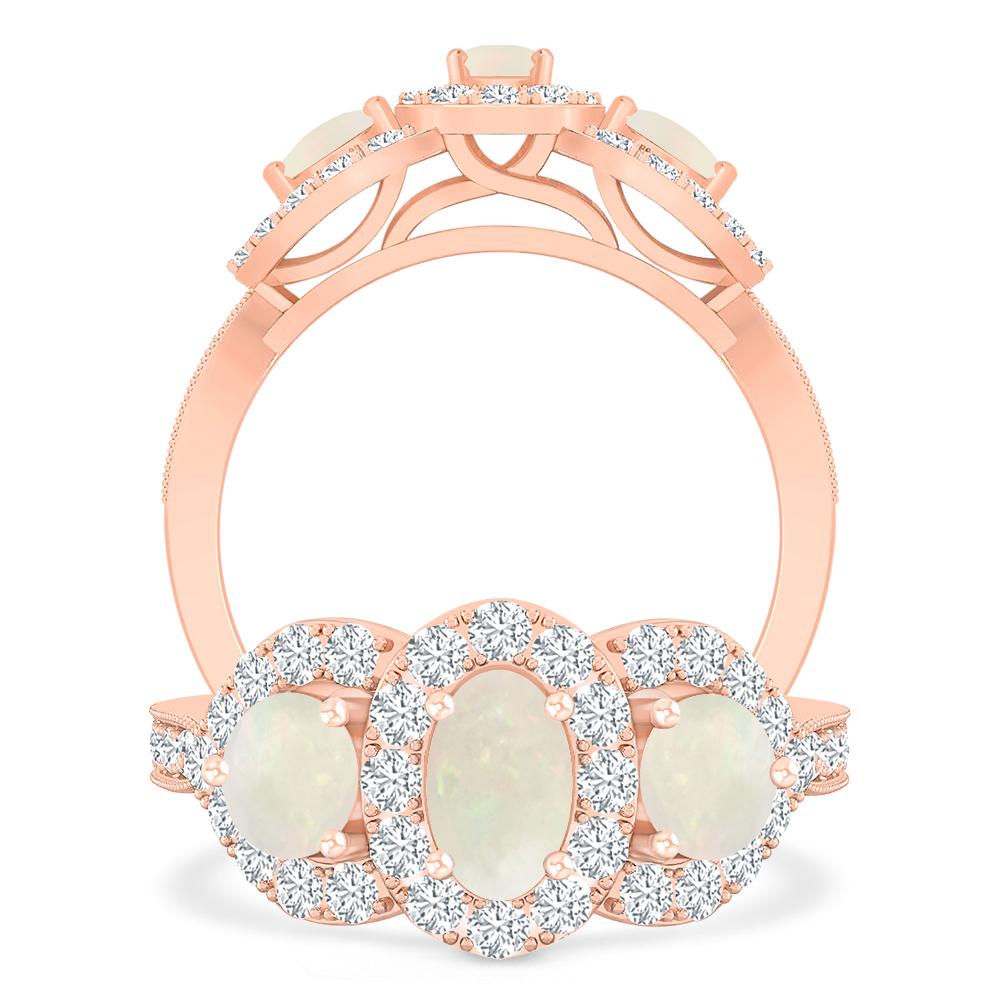 1 3/8 ctw Vintage Oval Emerald Three Stone Halo Engagement Ring In 14K White Gold