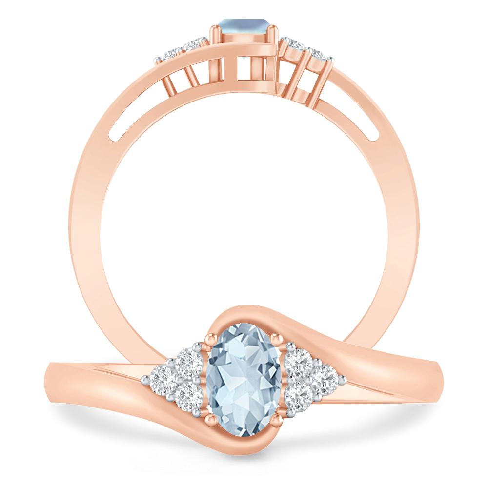 1/2 ctw Oval Aquamarine Three Stone Engagement Ring With Sleek Bypass Shank In 14K White Gold