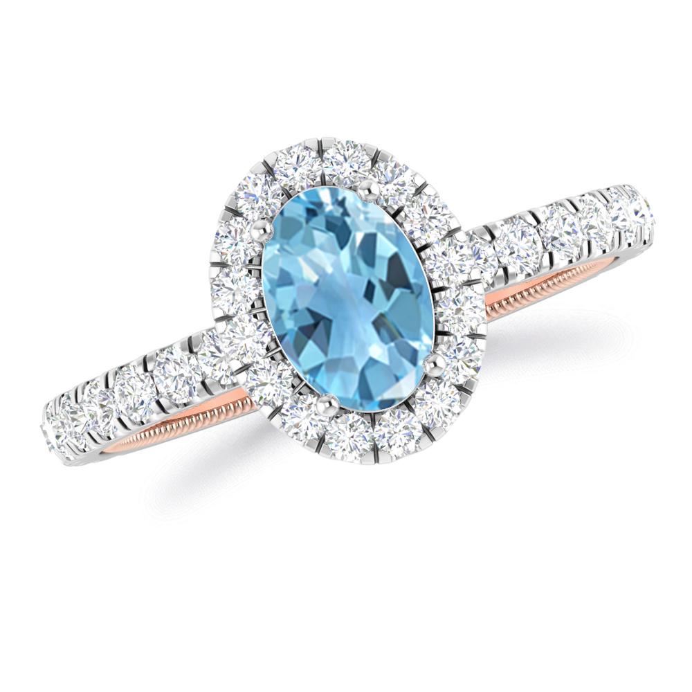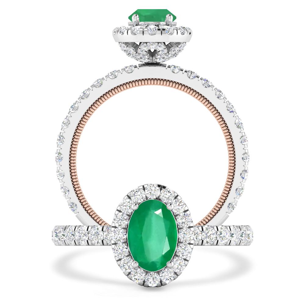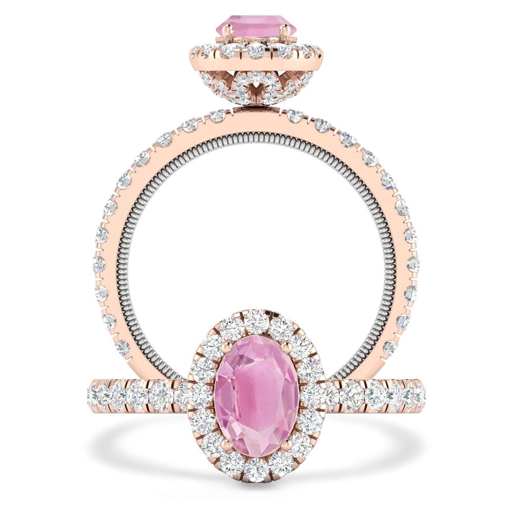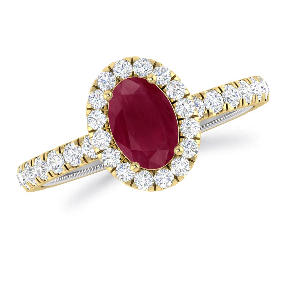 2 ctw Oval Ruby Halo Engagement Ring With Hidden Accented Petal Detail & Milgrain In 14K White Gold