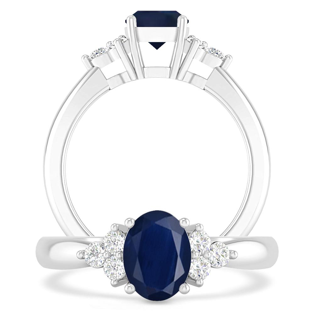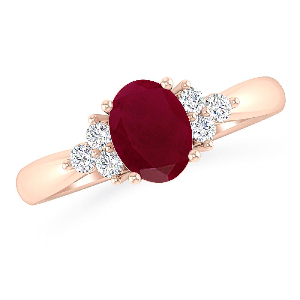 1 3/4 ctw Oval Ruby Side Stone Engagement Ring With Sleek Plain Shank In 14K White Gold