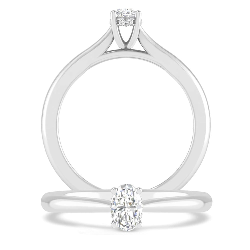 1 1/3 ctw Tapered Oval Diamond Hidden Halo Engagement Ring In 14K White Gold