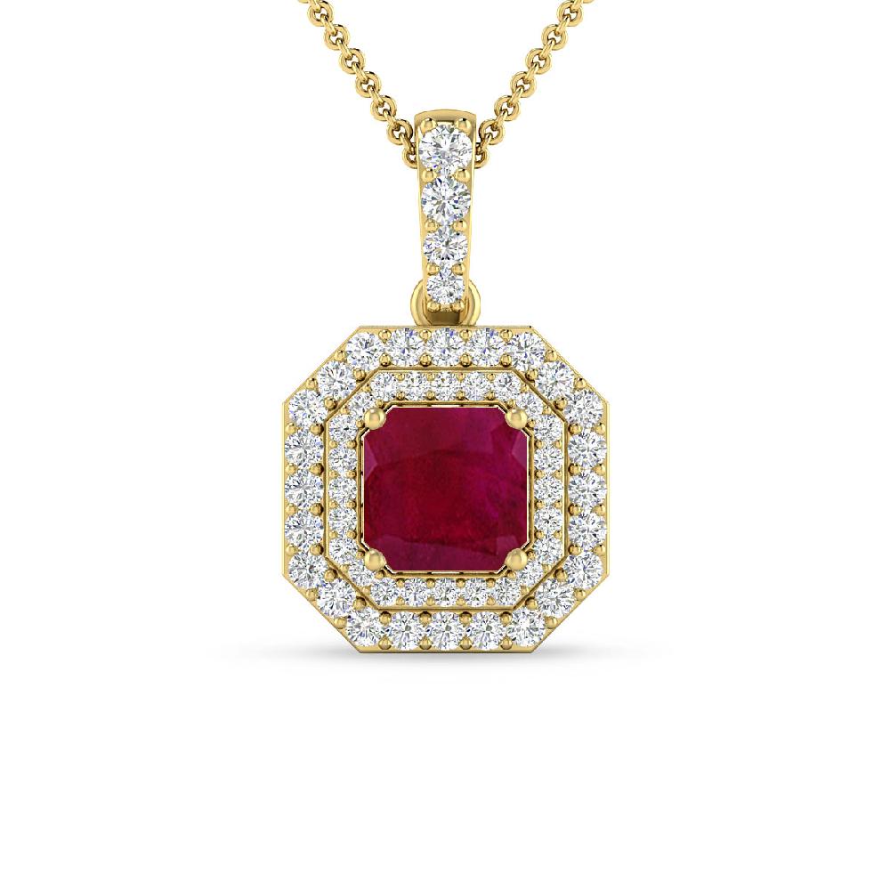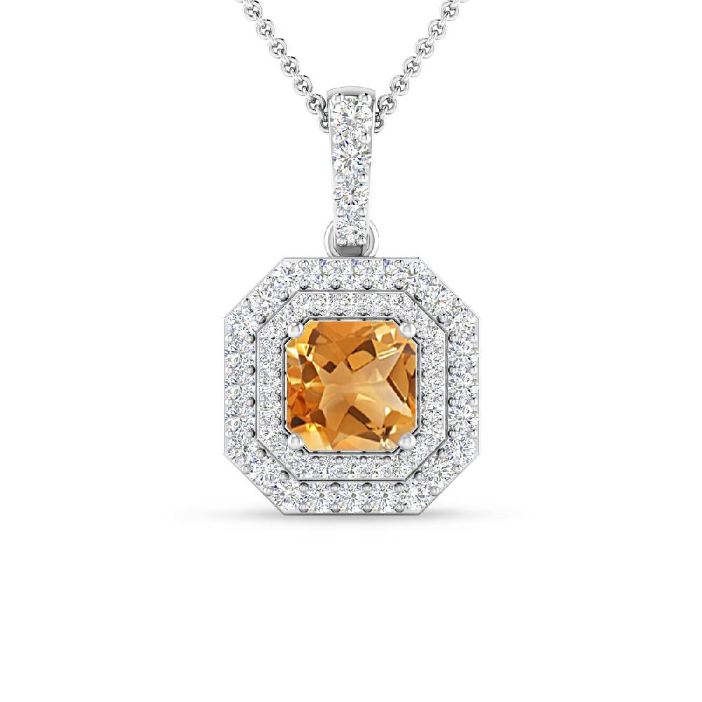 14K White Gold 1 3/4 ct Princess Cut Double Halo Diamond Pendant