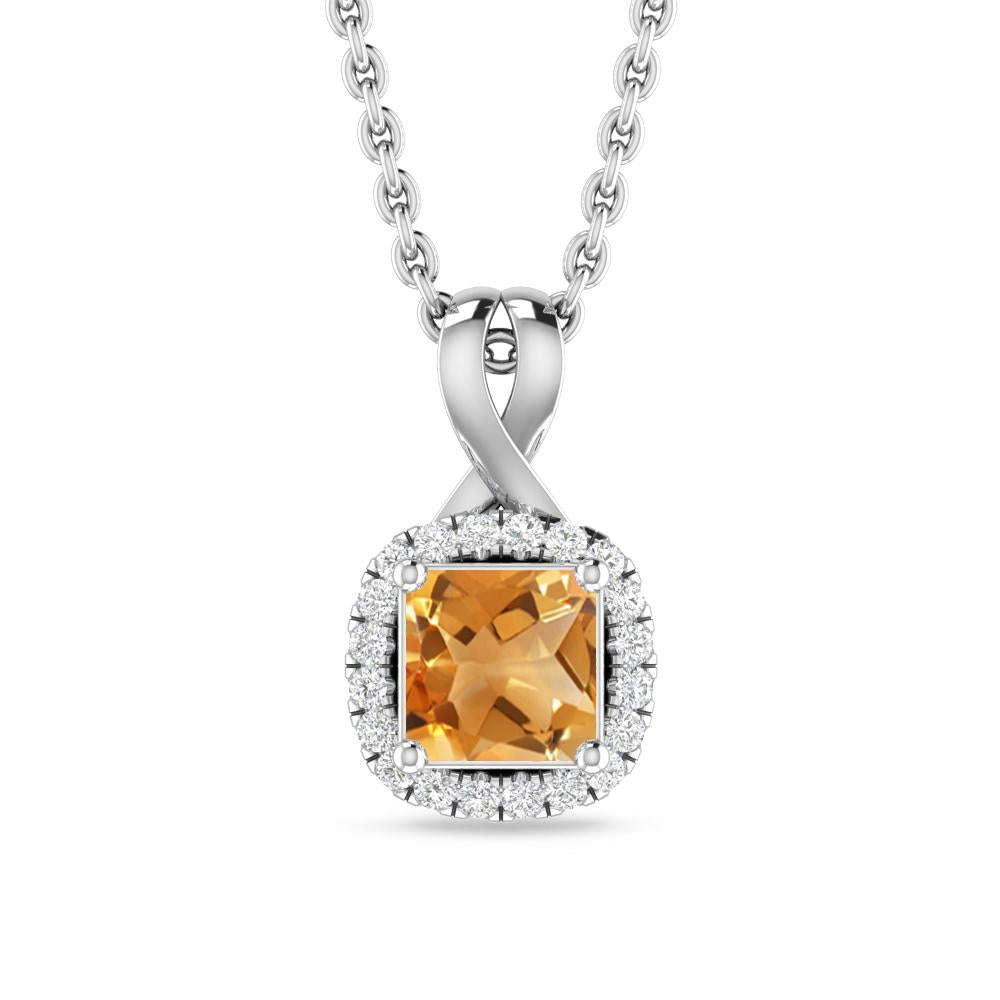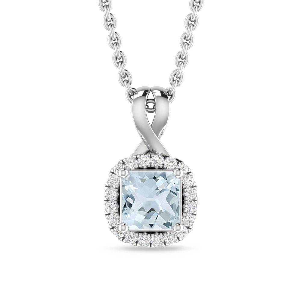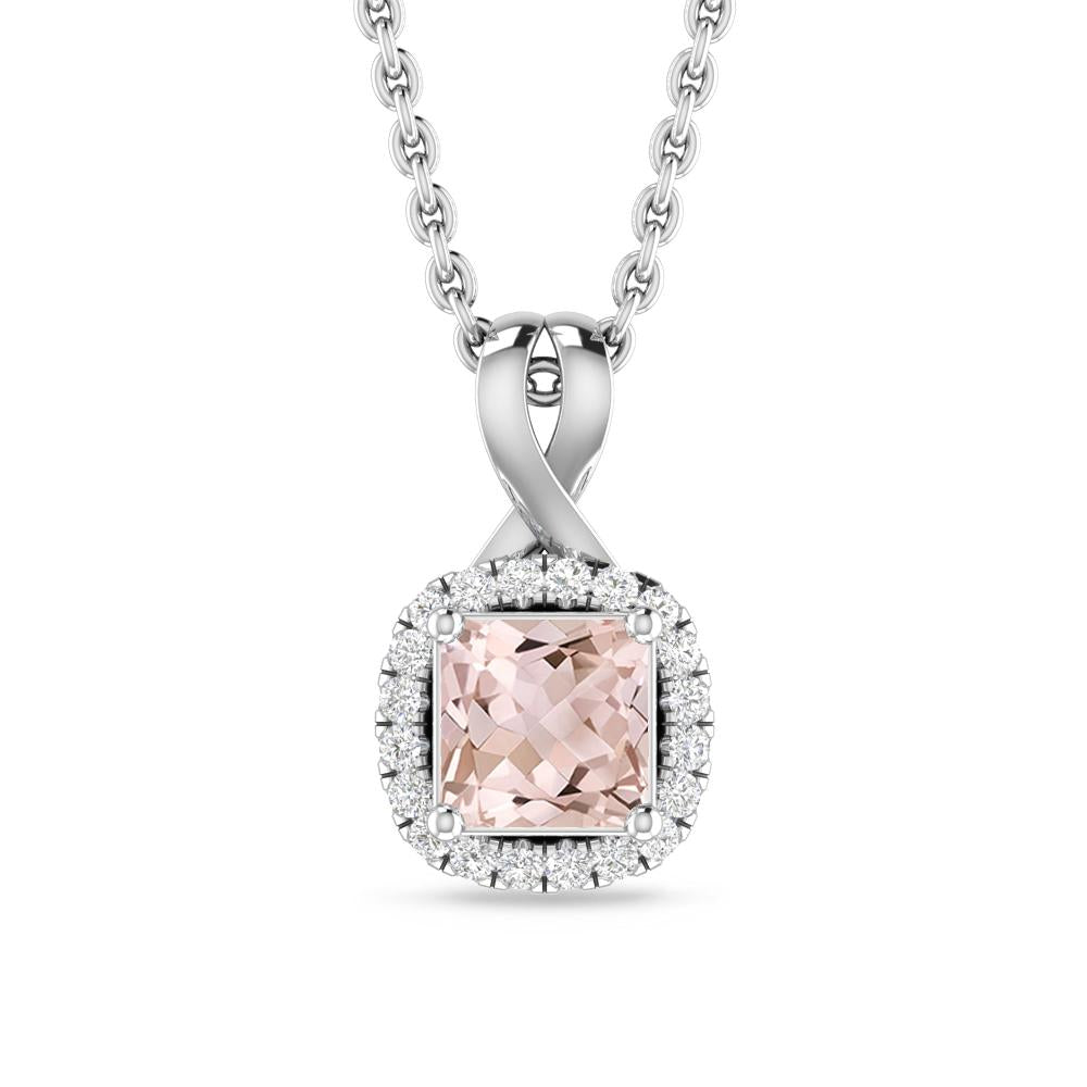7/8 ctw Princess Ruby Halo Pendant With Looped Bail In 14K White Gold