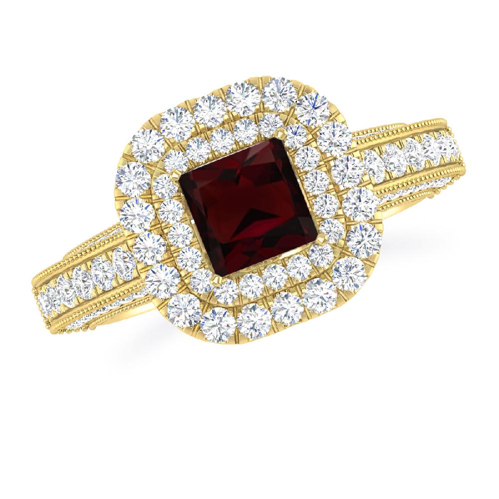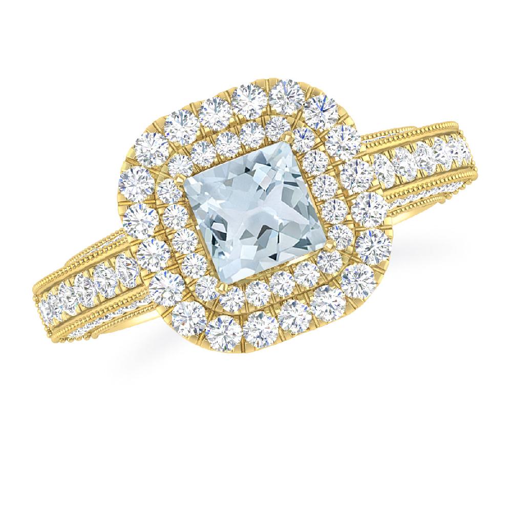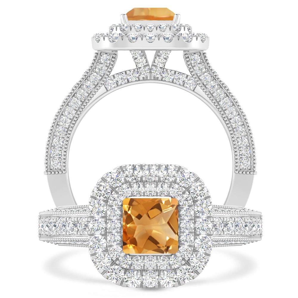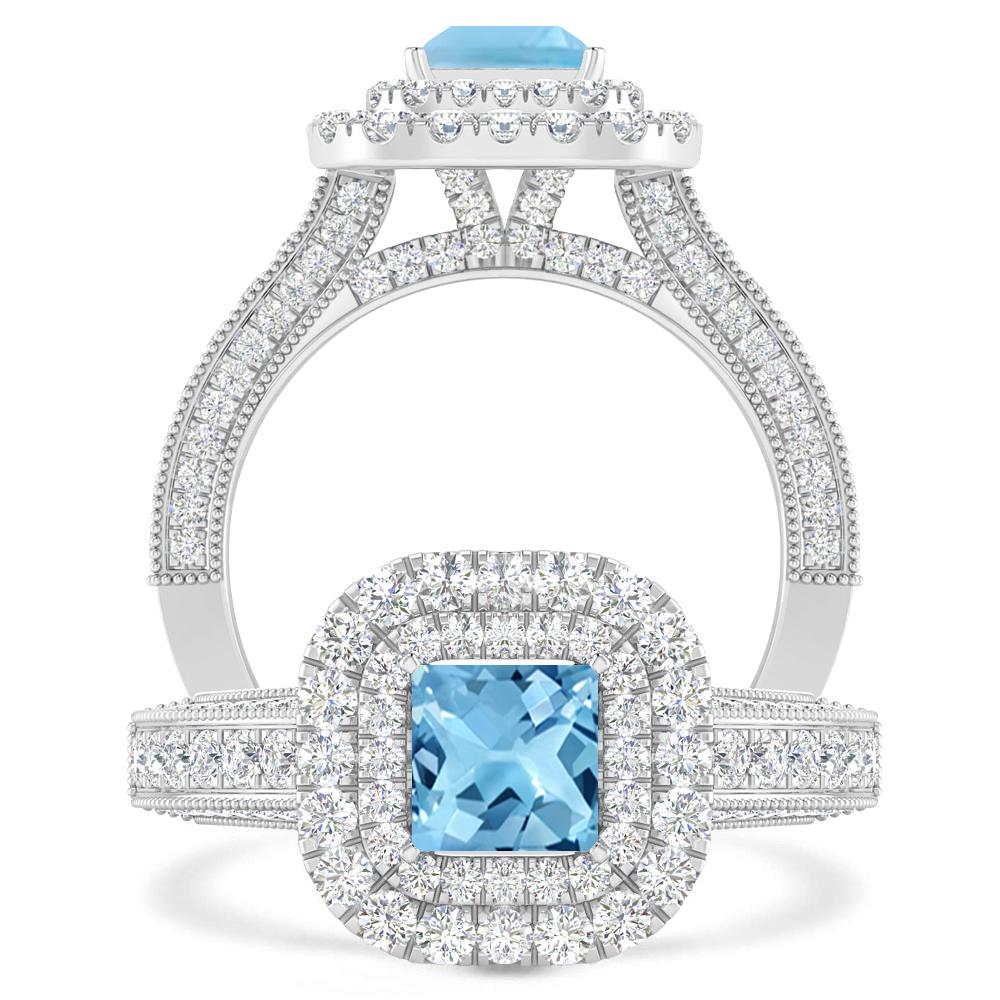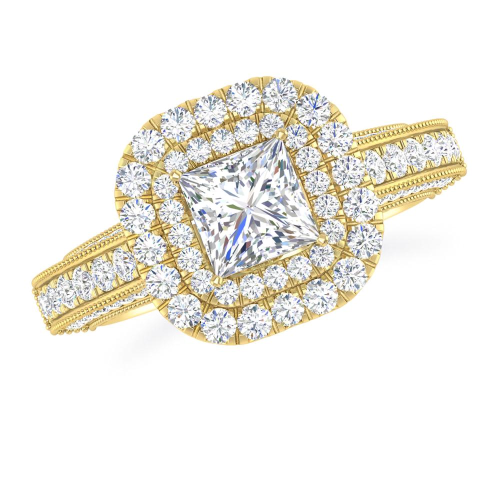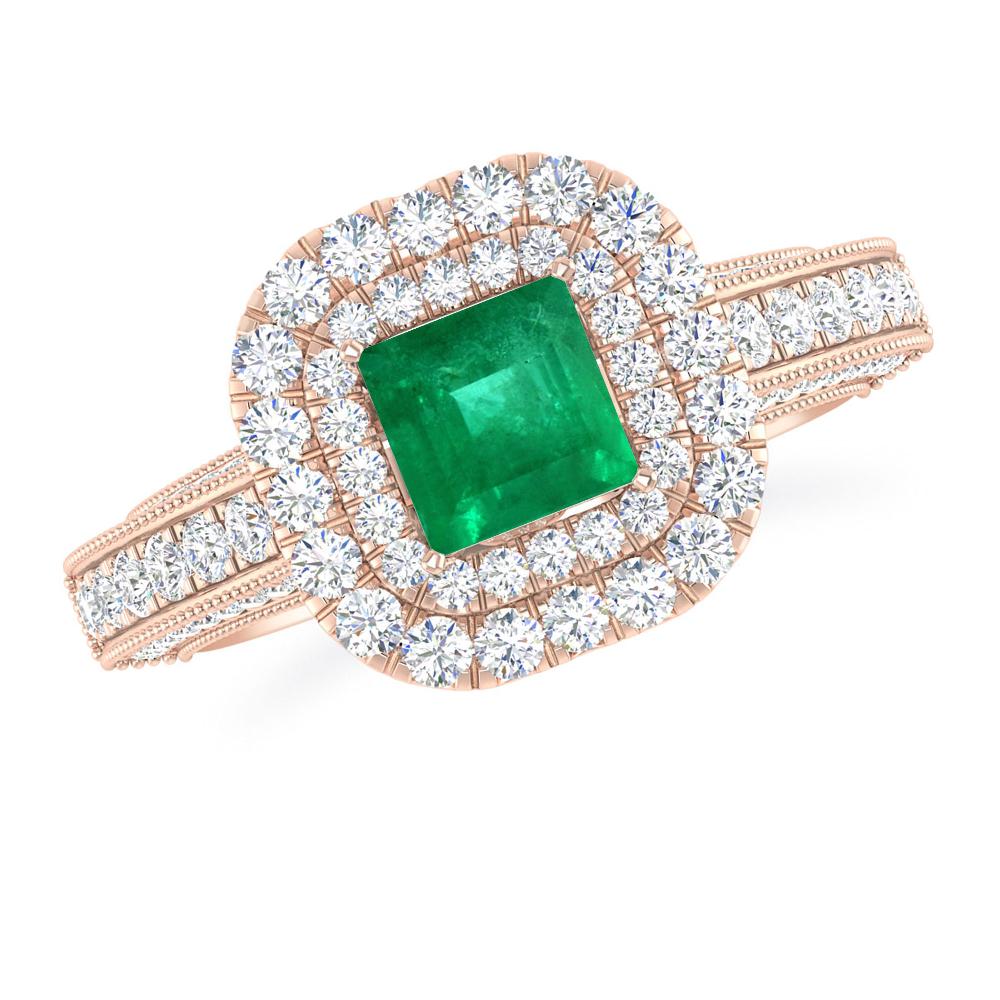 1 7/8 ctw Princess Emerald Double Halo Engagement Ring With Milgrain In 14K White Gold