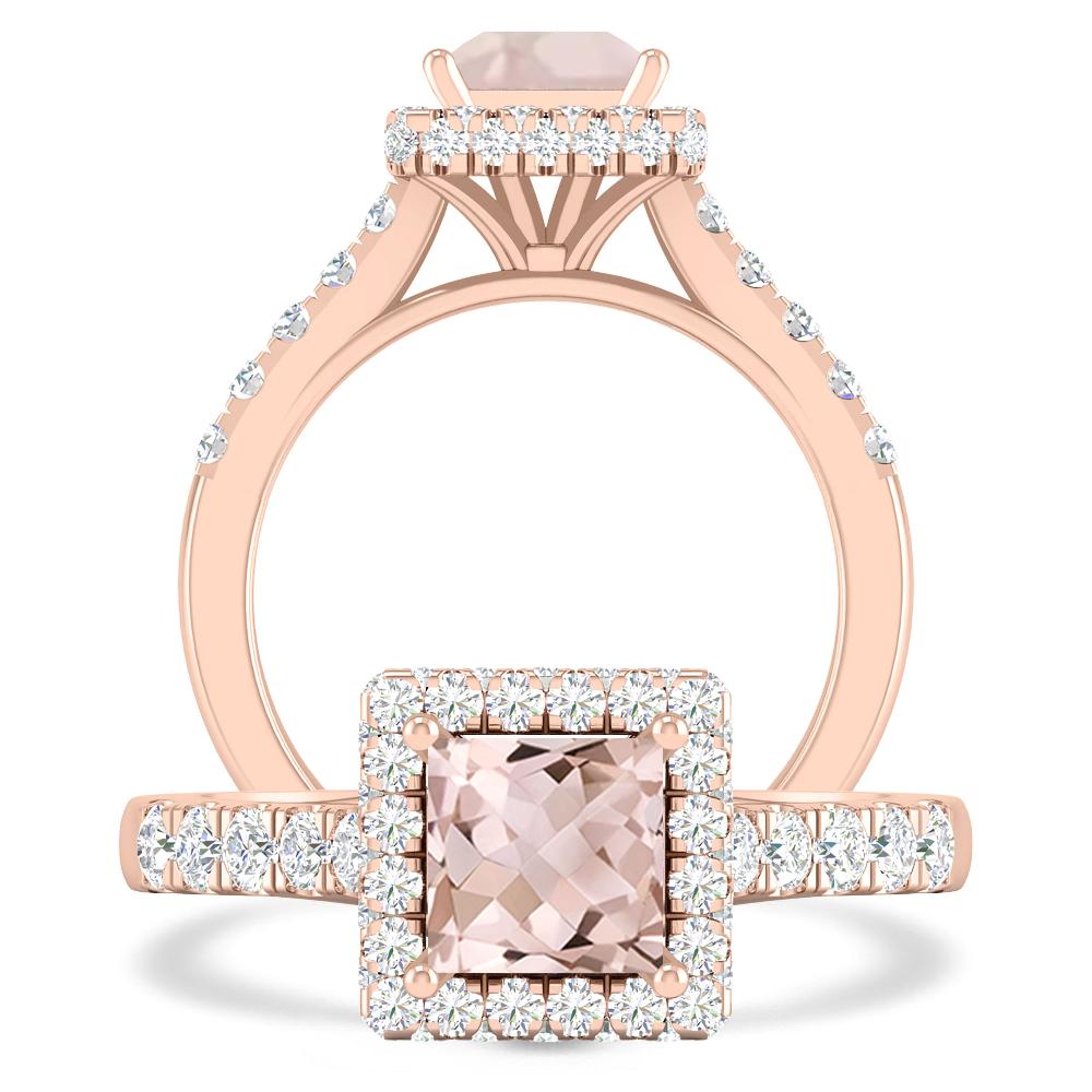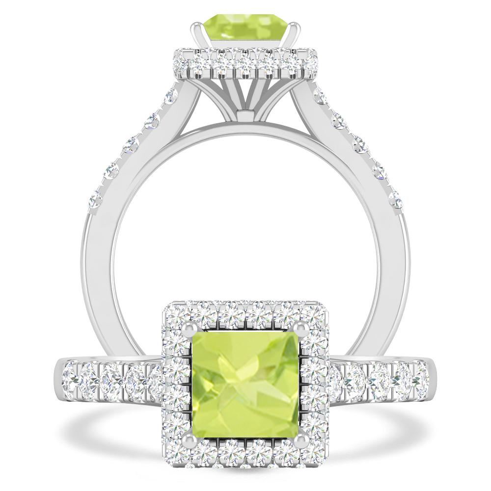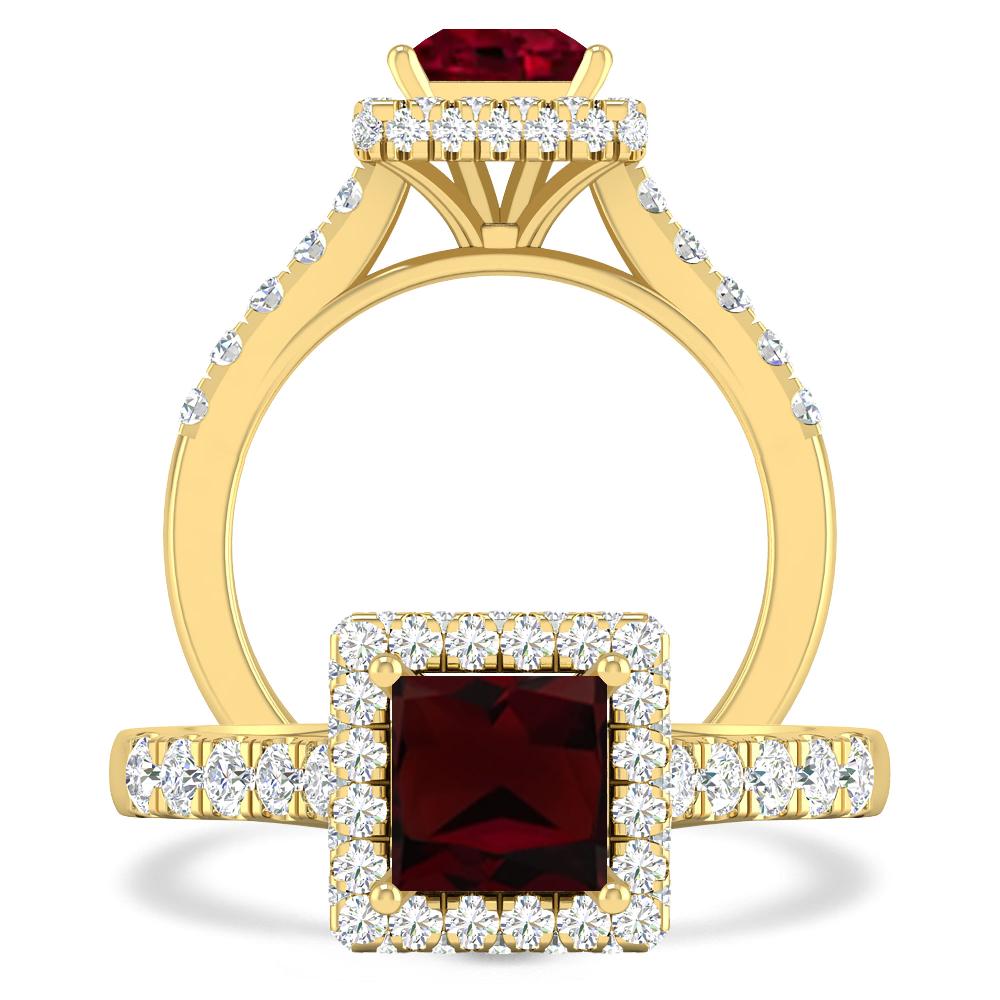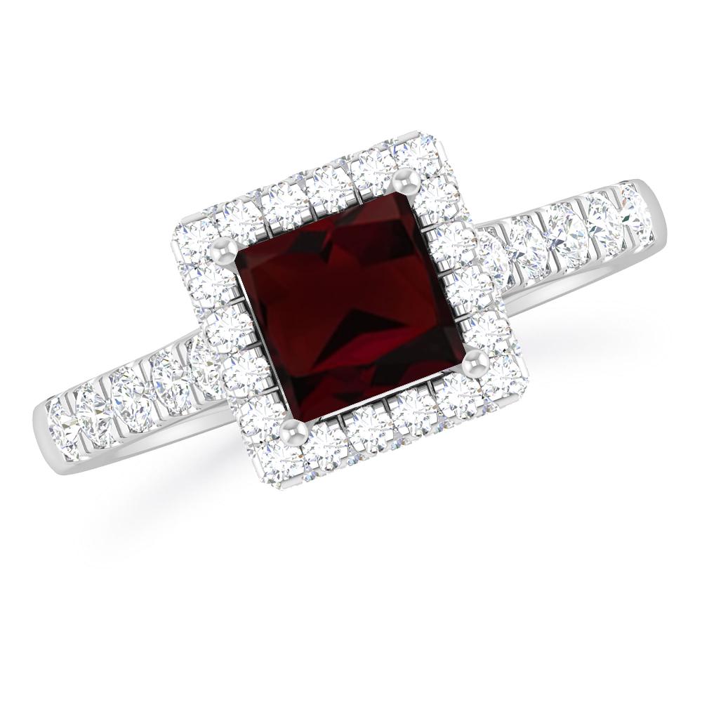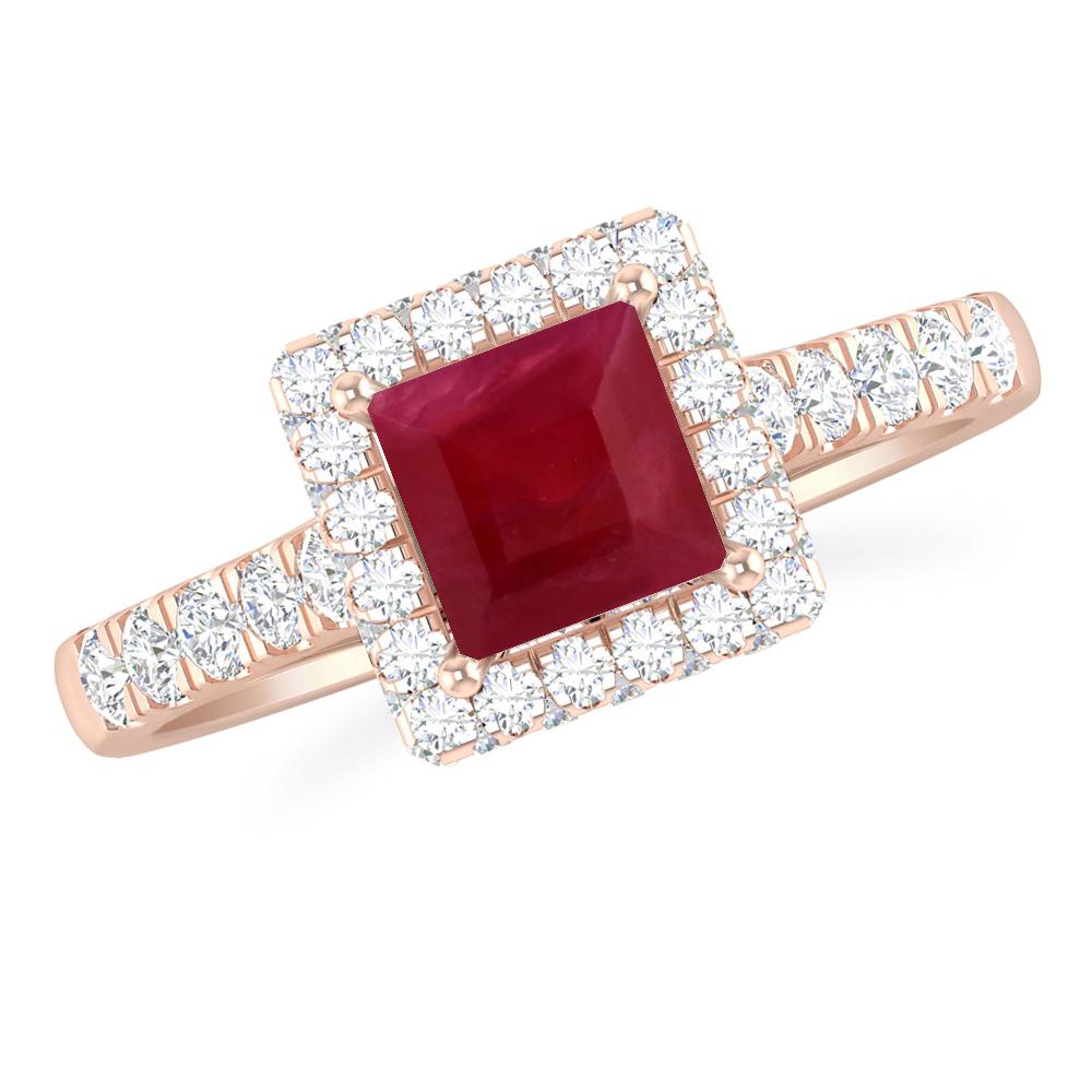 2 1/6 ctw Princess Ruby Double Halo Engagement Ring With Diamond Accented Shank In 14K White Gold