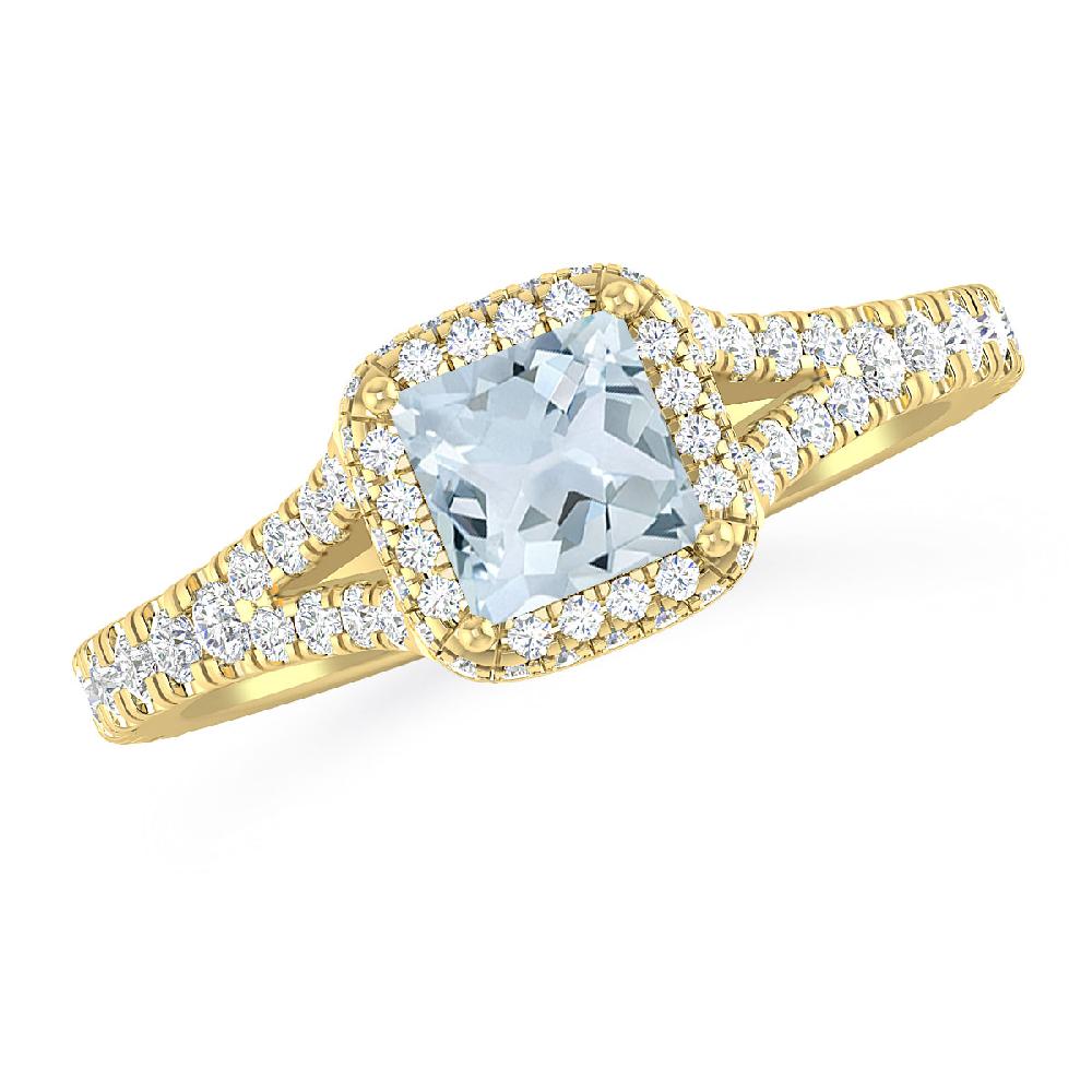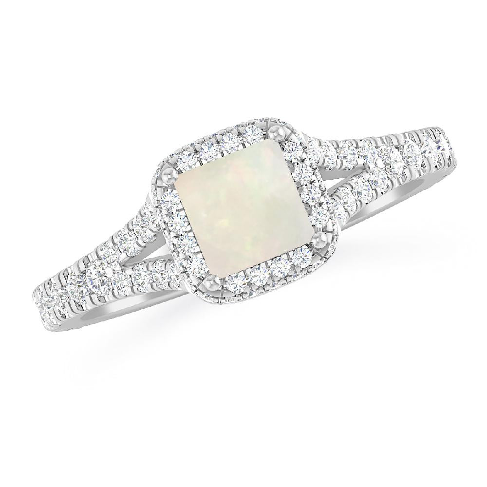 2 3/8 ctw Princess Diamond Double Halo Engagement Ring With Split Accented Shank In 14K White Gold