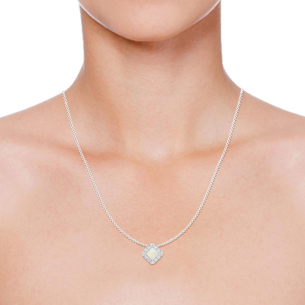 1 5/8 CTW Princess Peridot Single Halo Pendant With Beautiful Basket In 14K White Gold