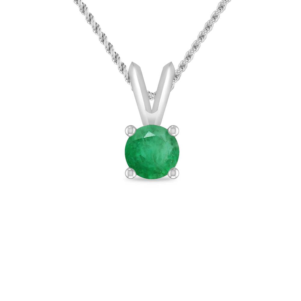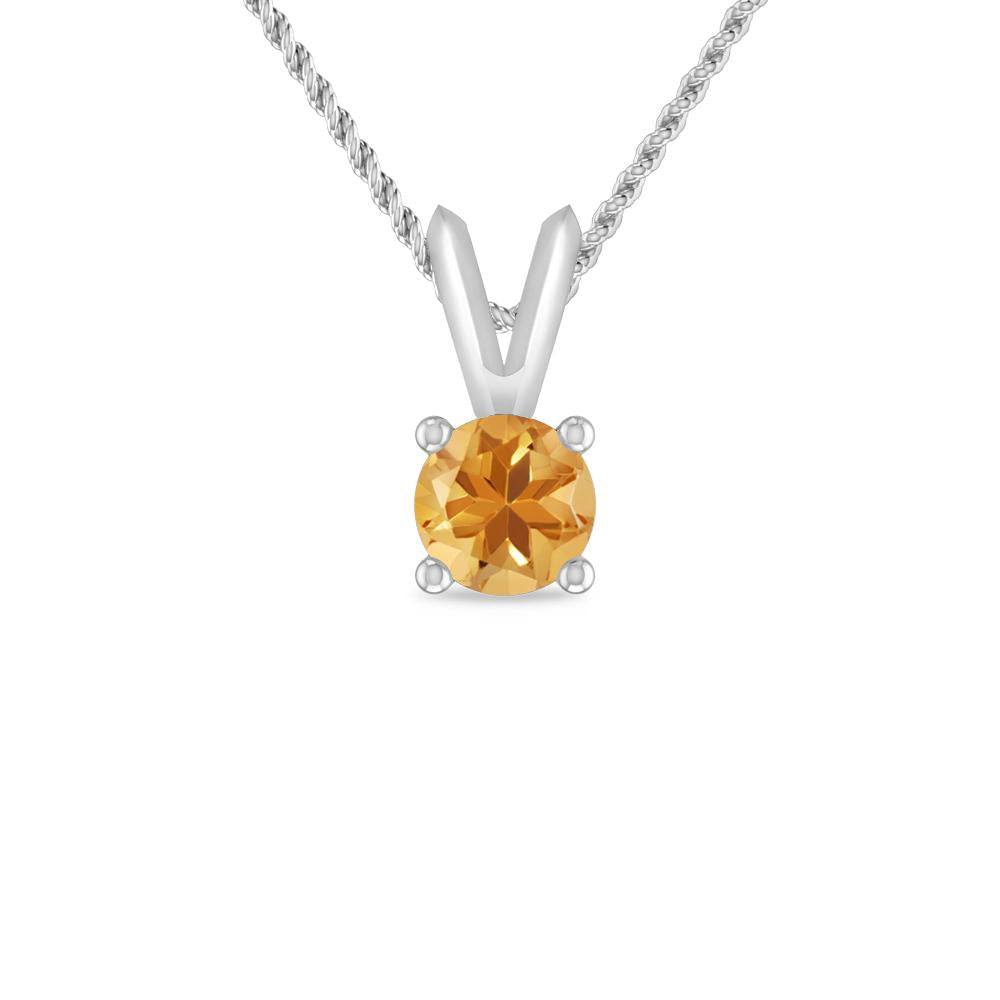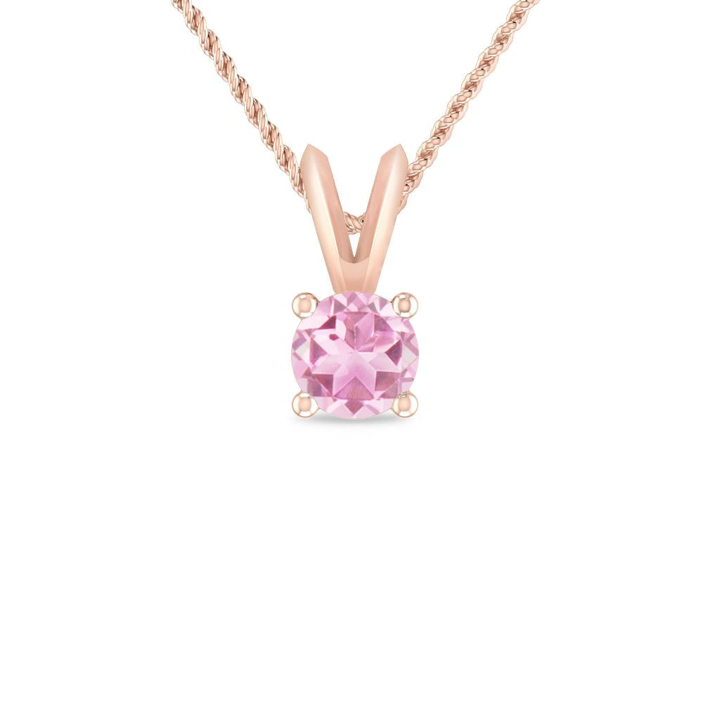 Delicate Round Pink Tourmaline Solitaire Pendant Held By a V-Bail In 14K White Gold