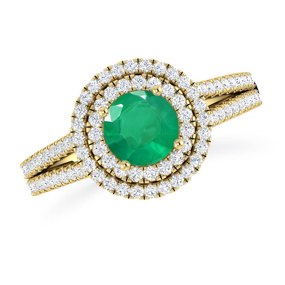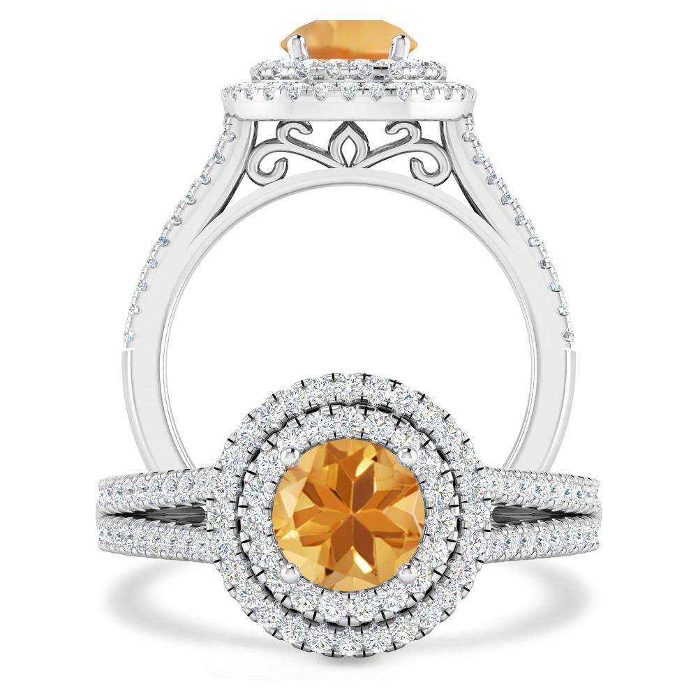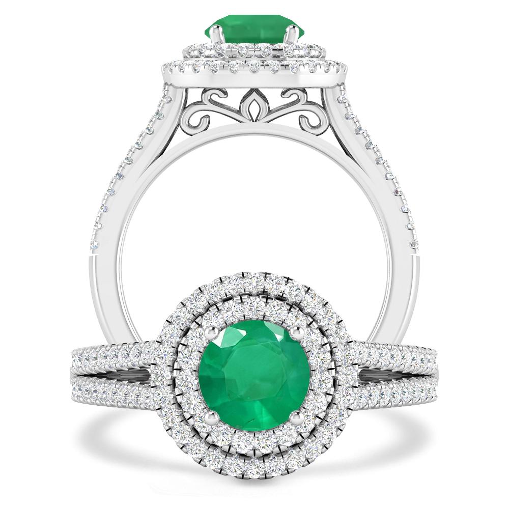 1 1/3 ctw Round Peridot Double Halo Engagement Ring With Accented Split Shank In 14K White Gold
