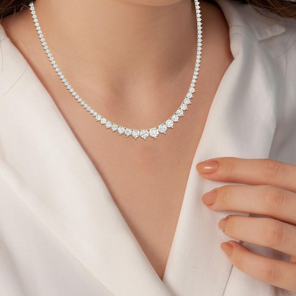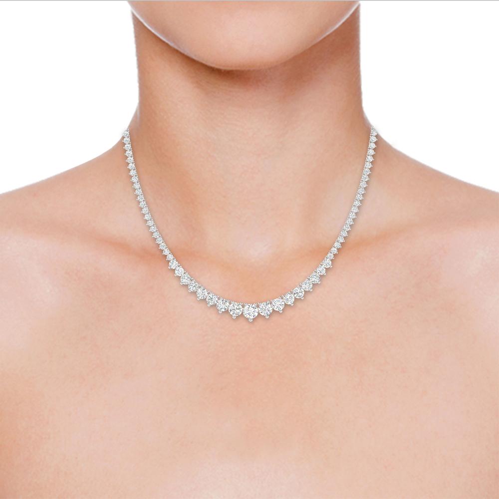 Radiant 10 ct Round Diamond Tennis Necklace In 14K White Gold
