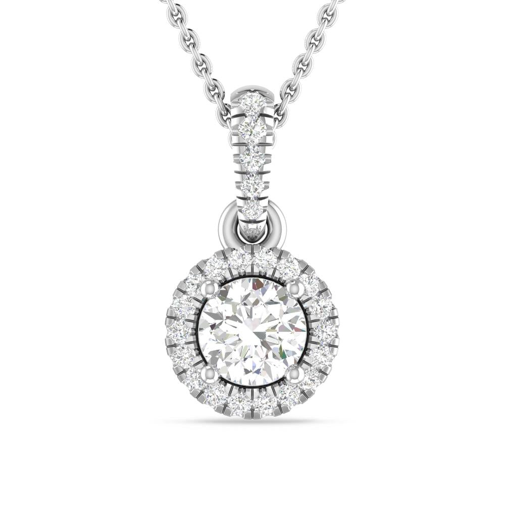 14K White Gold Round 1 ctw Diamond Halo Pendant With Accented Single Bail