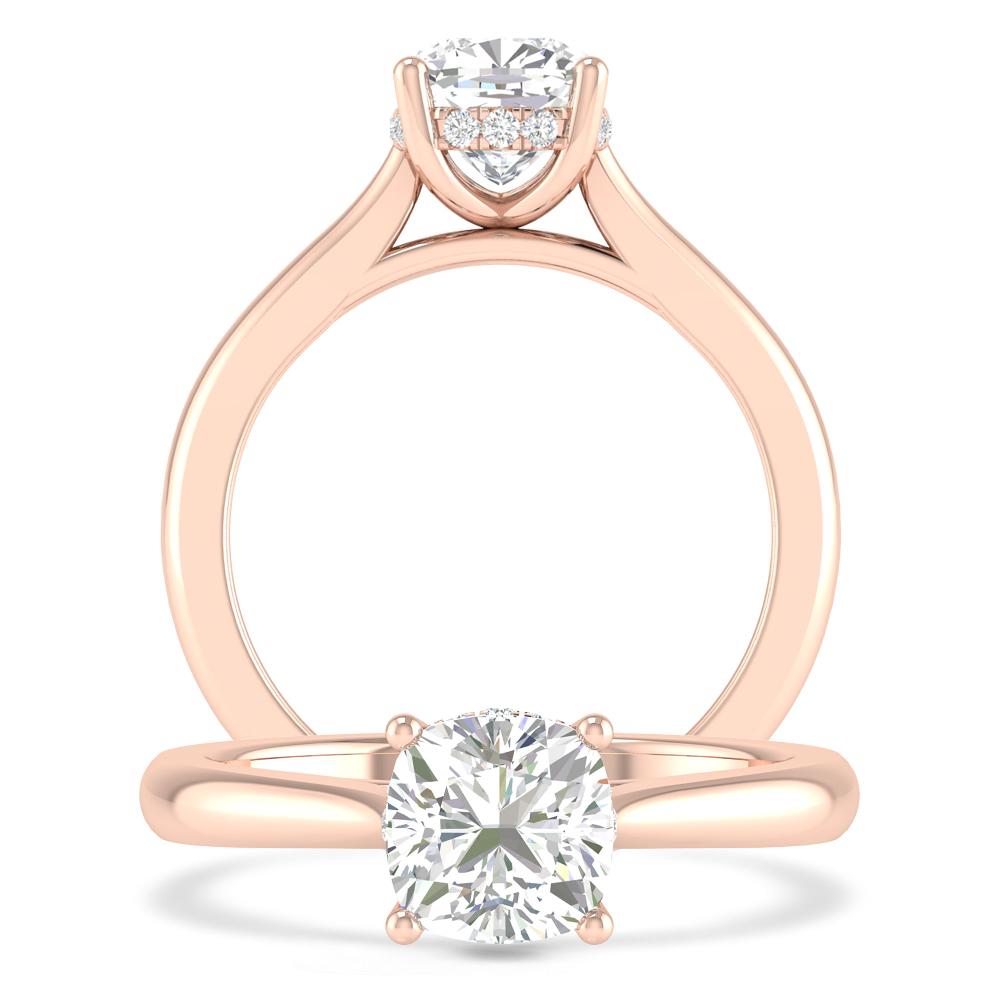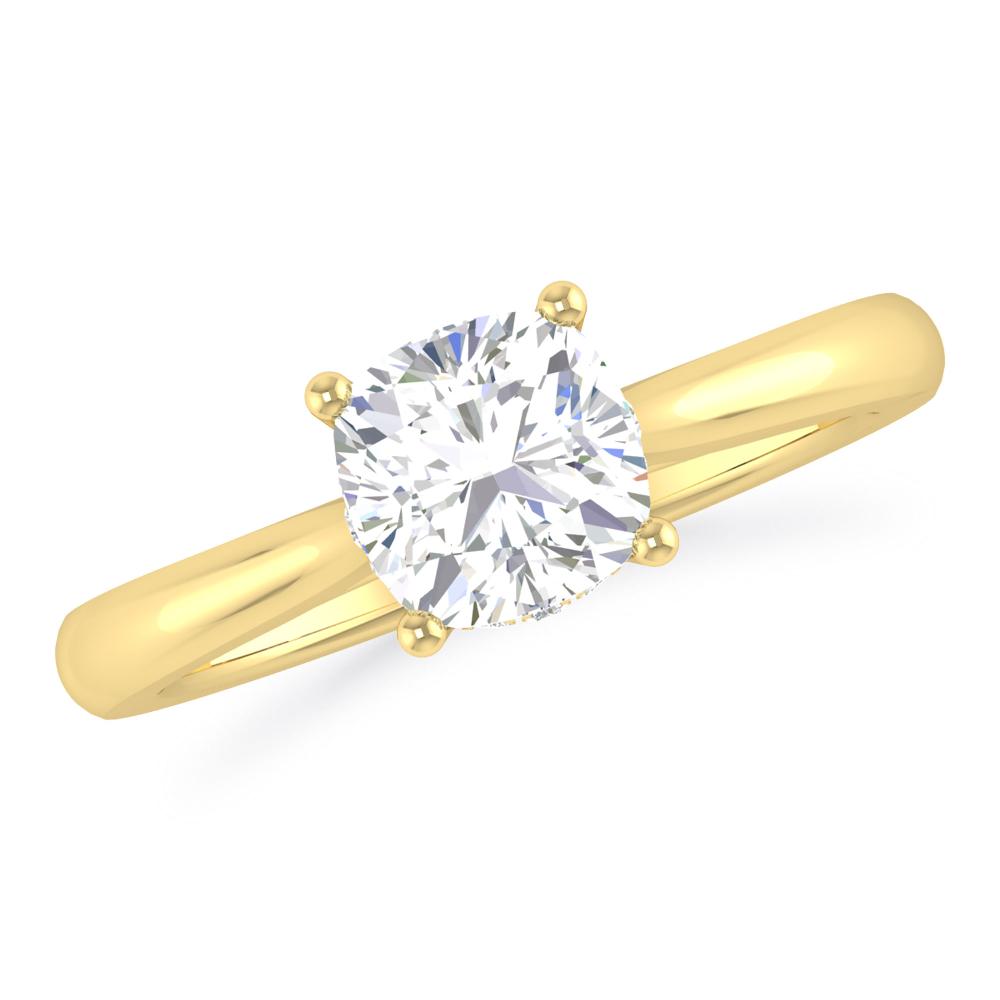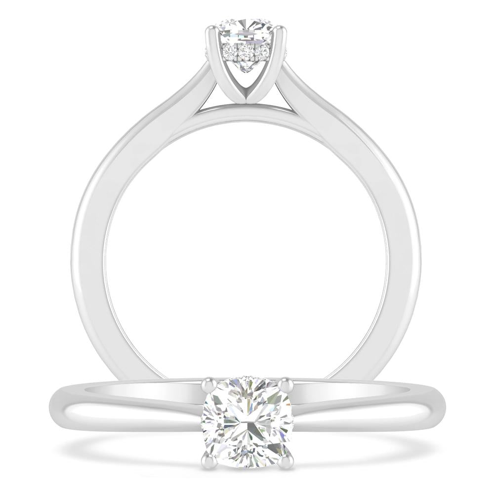 1 1/3 ctw Cushion Diamond Solitaire Hidden Halo Engagement Ring With Plain Tapered Shank In 14K White Gold