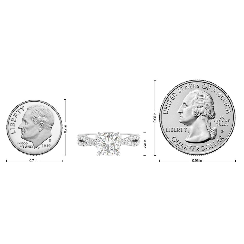 Twisted Vine Cathedral Engagement Ring with Cushion-Cut Diamond in 14K White Gold