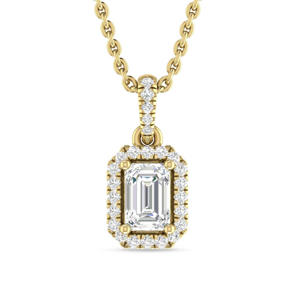 1 1/20 ctw Emerald Cut Diamond Halo Pendant With Cascading Bail Accents In 14K White Gold