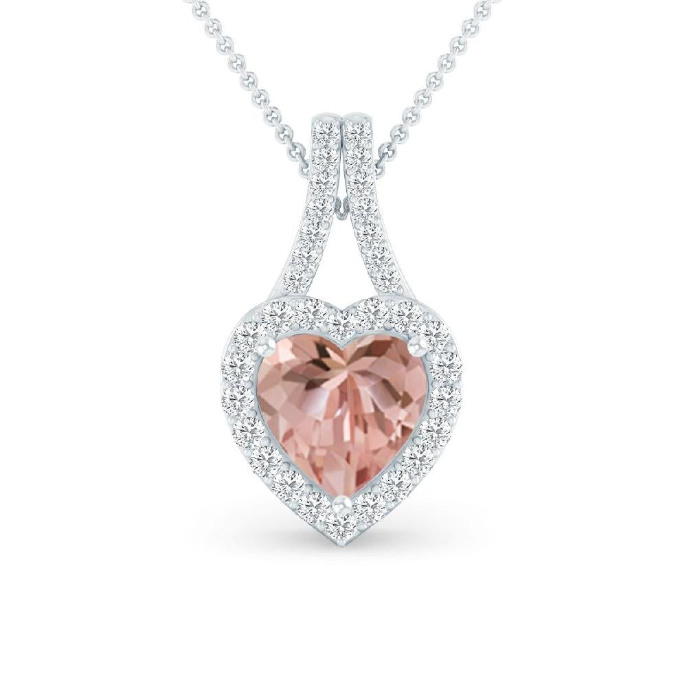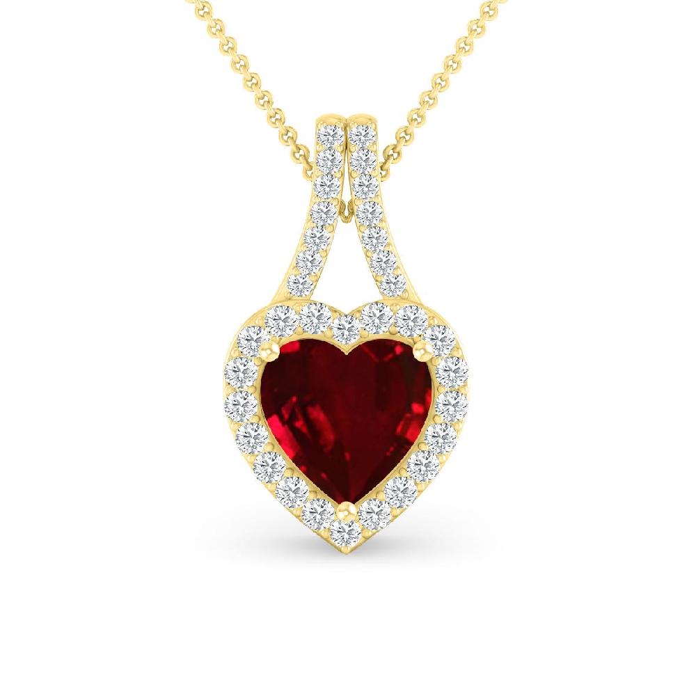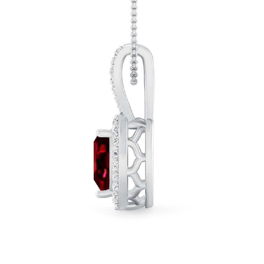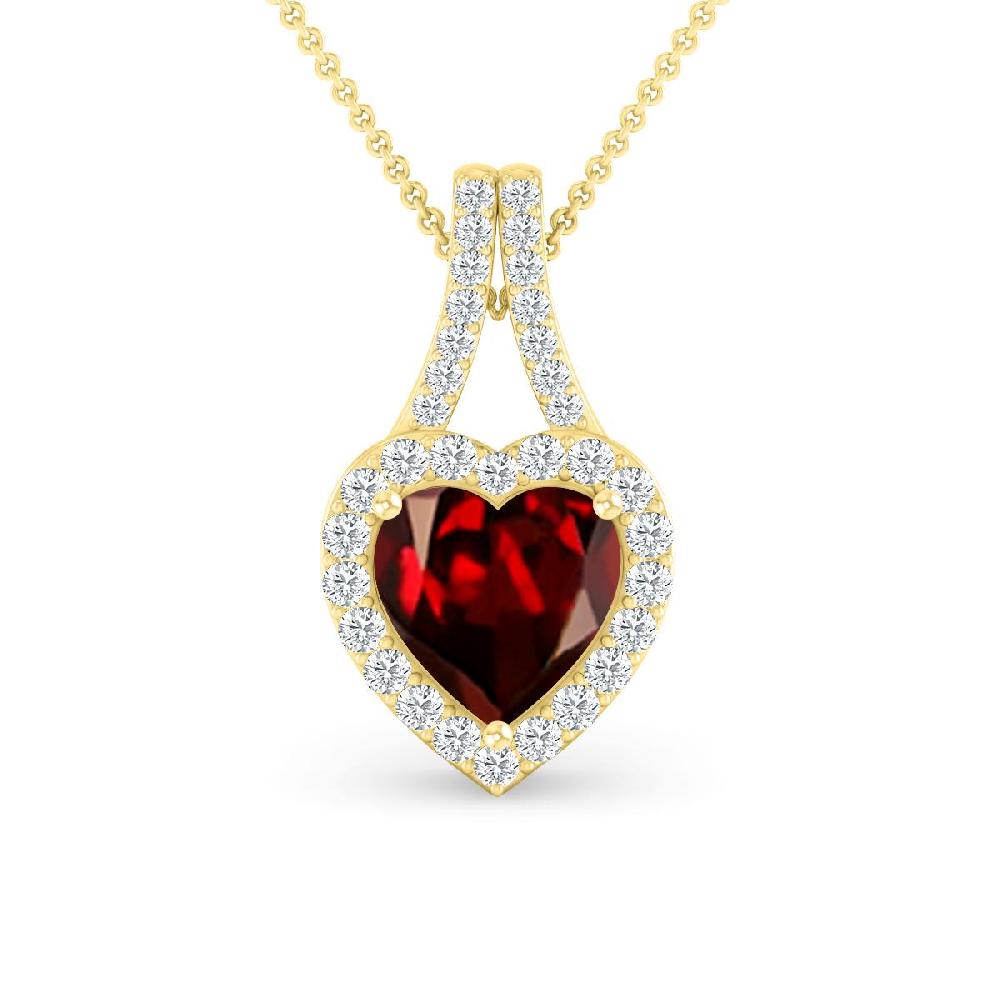 1 5/8 ctw Heart Garnet Halo Pendant With Split Accented Bail In 14K White Gold