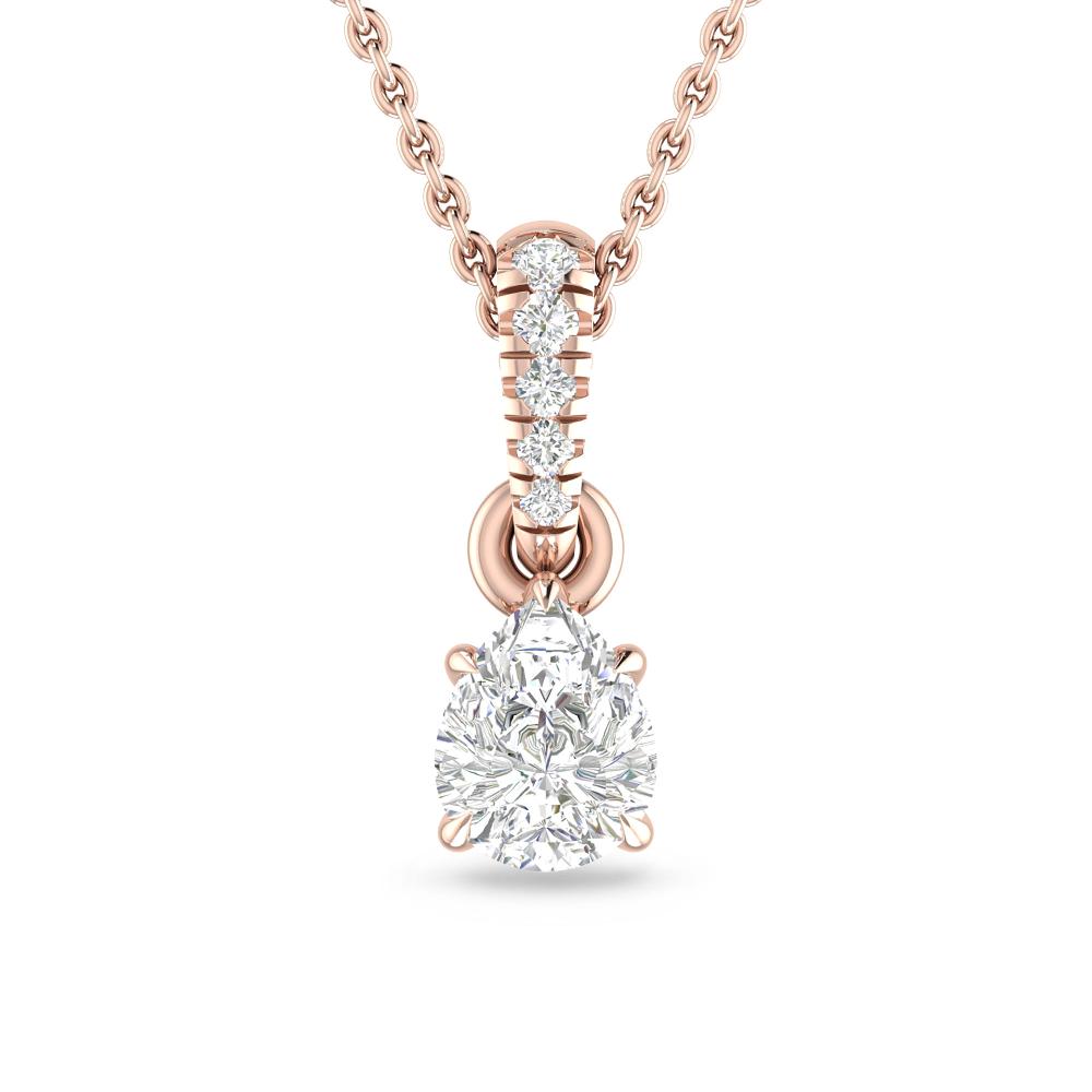 1 1/20 ctw Claw-Set Pear Diamond Hidden Halo Pendant With Single Accented Bail In 14K White Gold