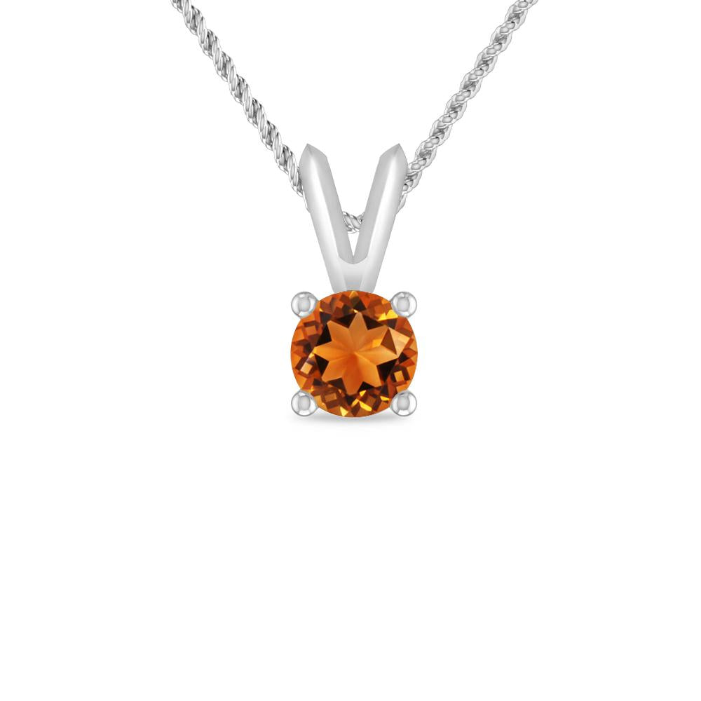 Delicate Round Pink Tourmaline Solitaire Pendant Held By a V-Bail In 14K White Gold