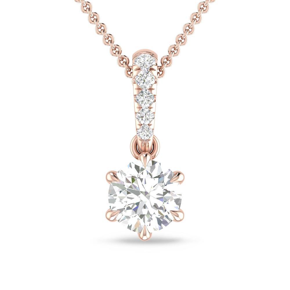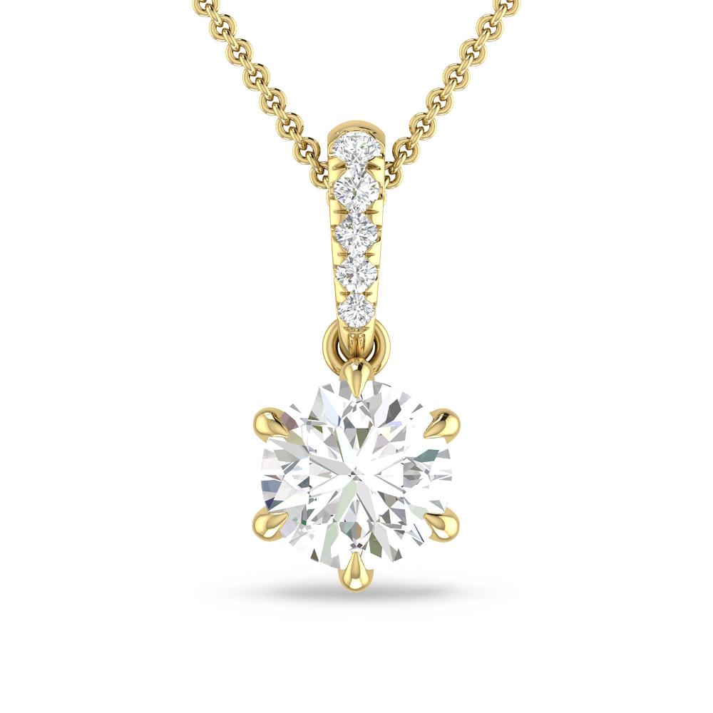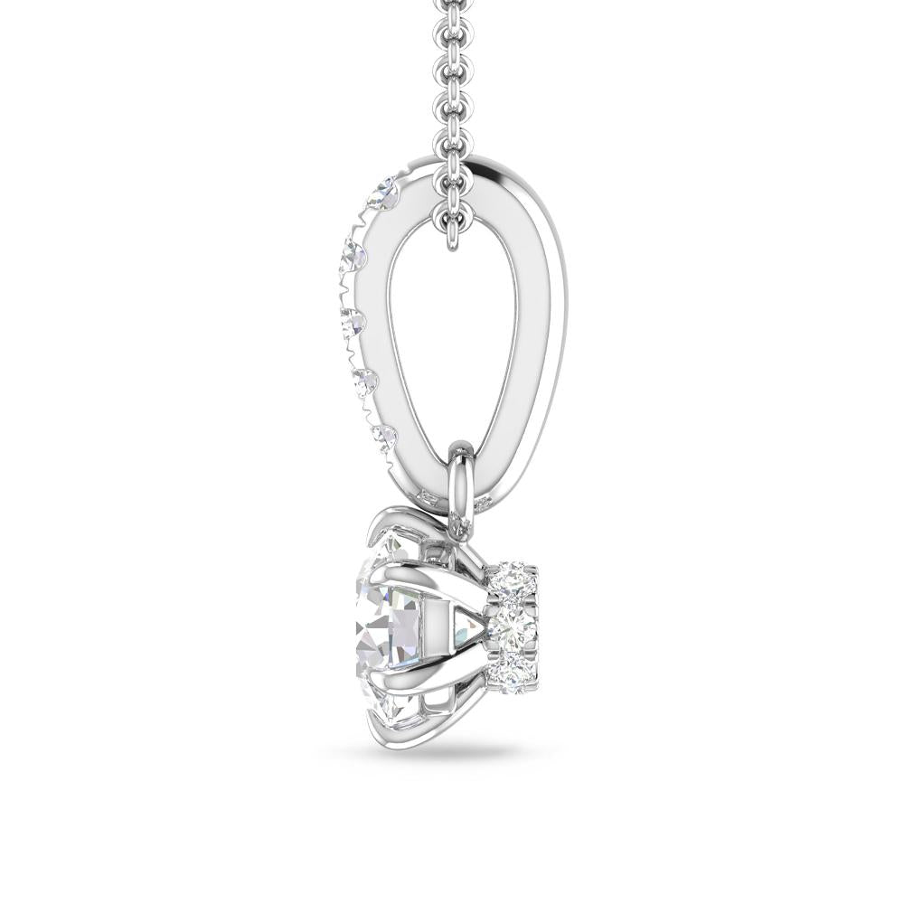 1 1/10 ctw Claw-Set Round Diamond Hidden Halo Pendant With Single Accented Bail In 14K White Gold