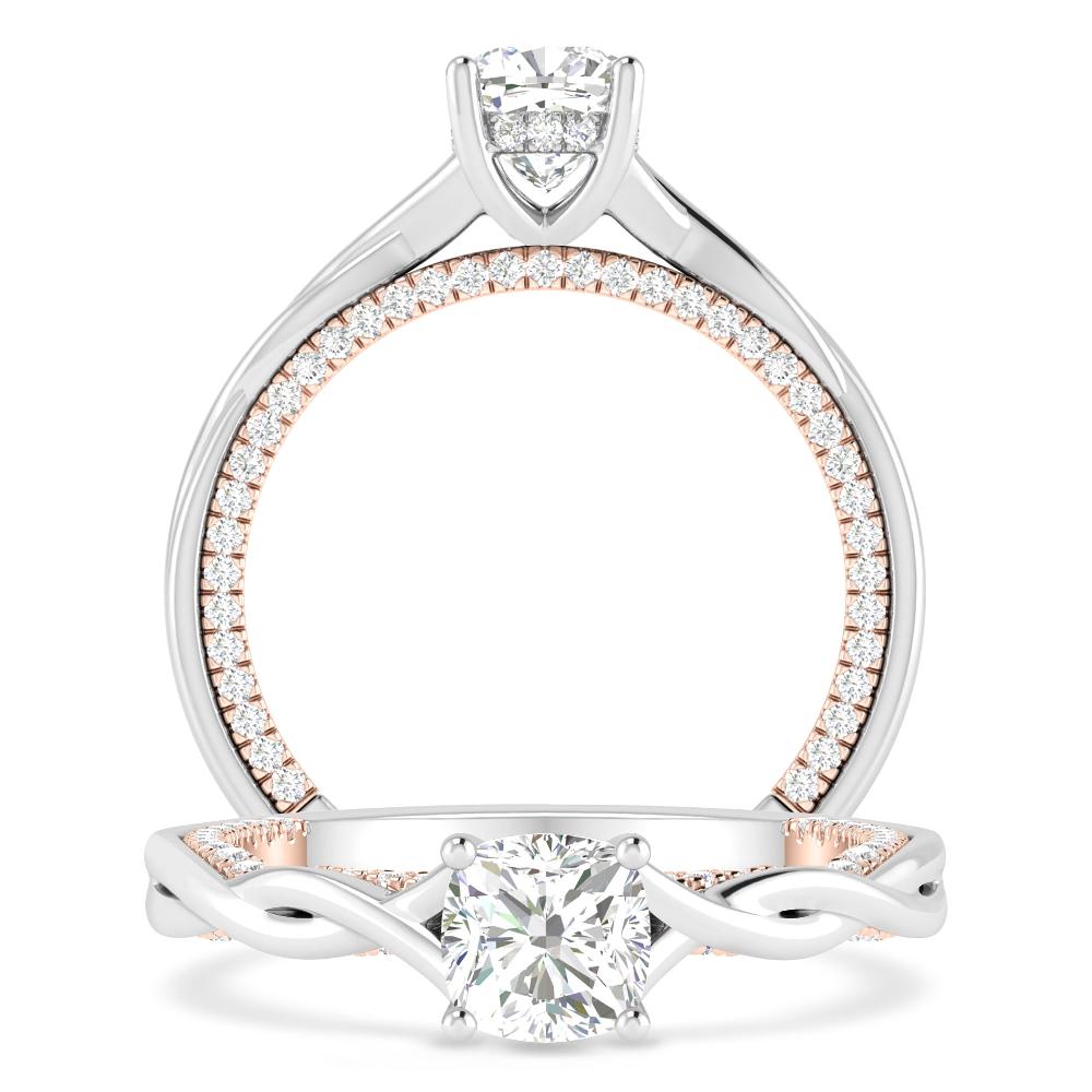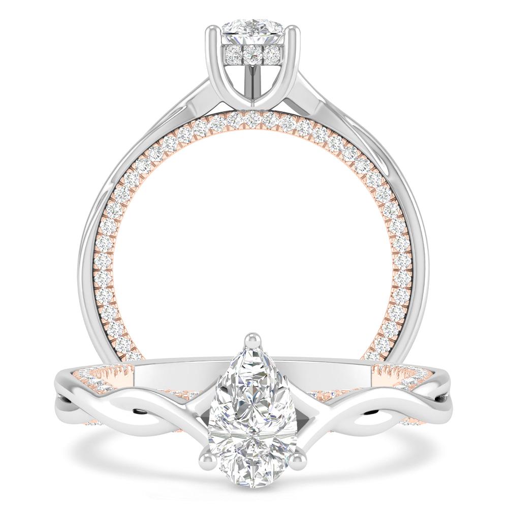 Oval 1 3/8 ct Diamond 14K White Gold Ring With Classic Hidden Halo And Side Stones On Twisted Shank