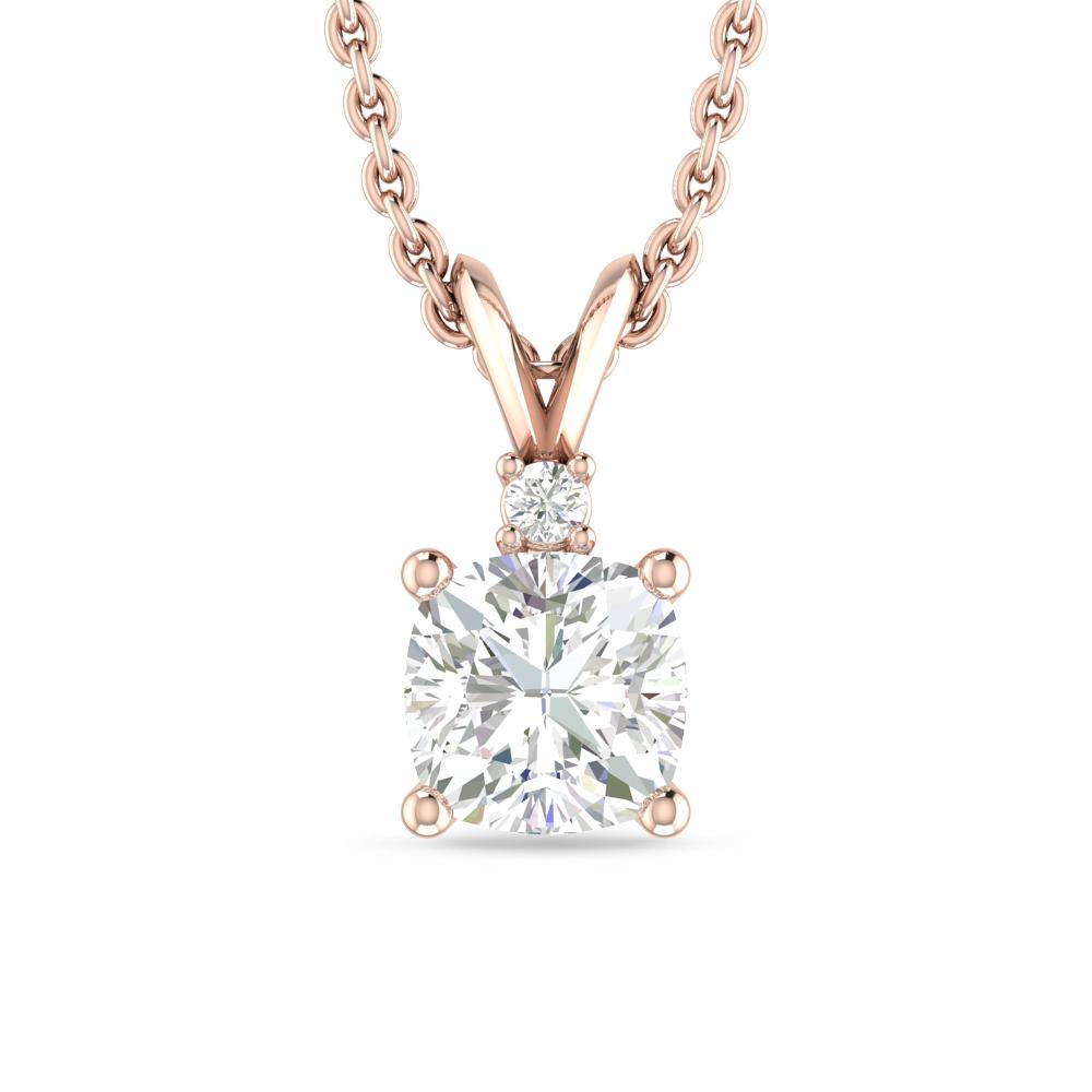 1 1/5 ctw Lab Grown Round & Cushion Two Stone Lab Grown Ruby Pendant WIth V-Bail In 14K White Gold