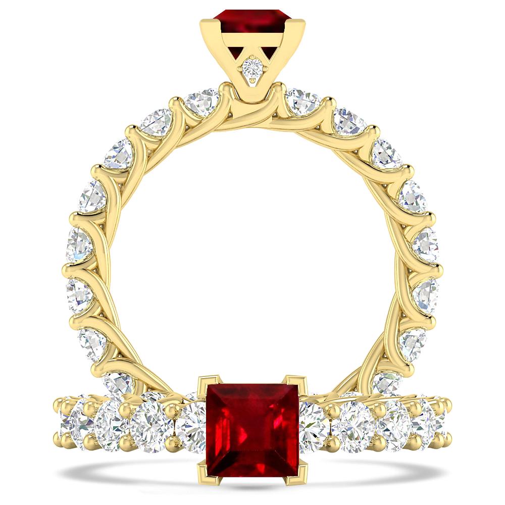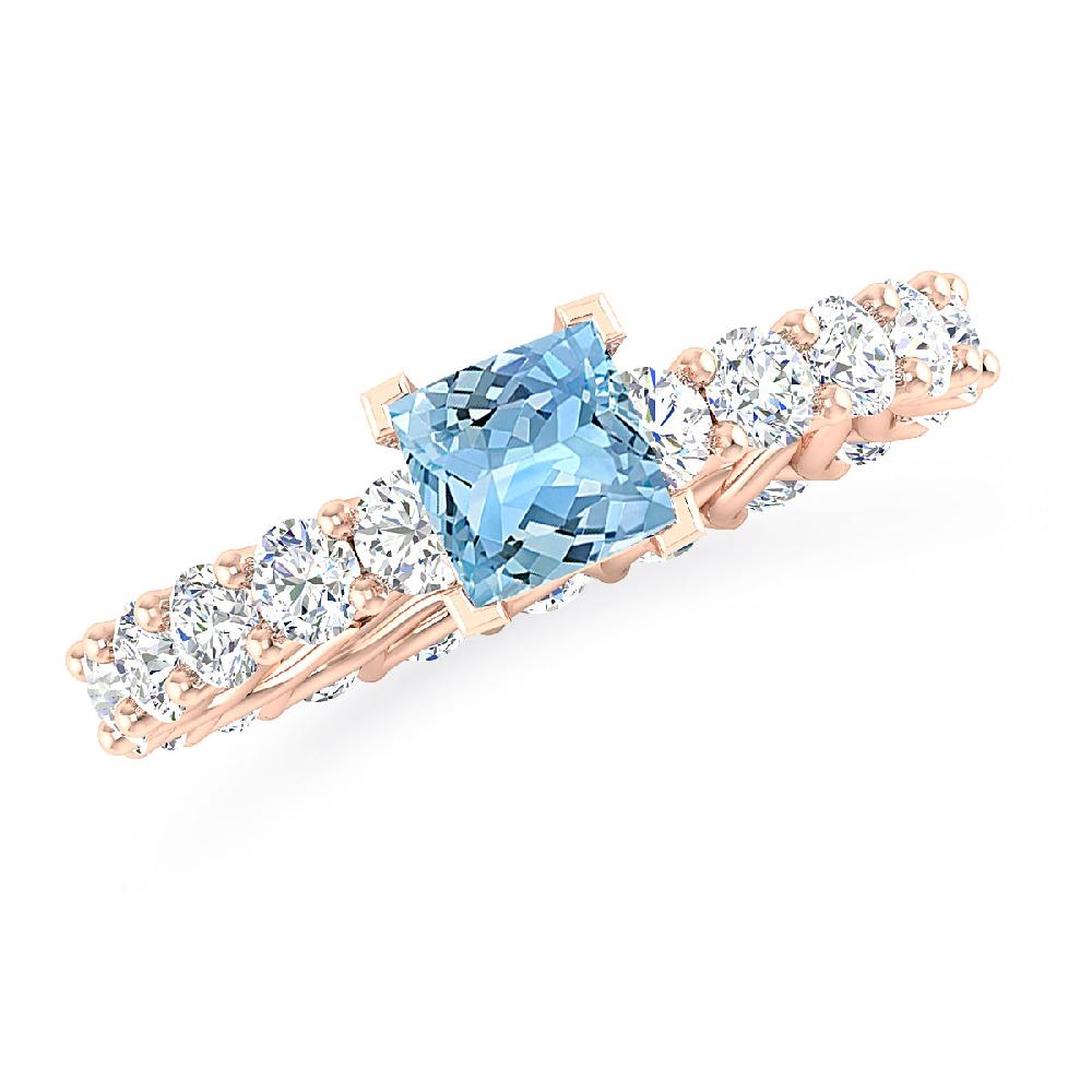 5 1/10 ctw Eternity Princess Lab Grown Lab Grown Sapphire Engagement Ring With Trellis Set Shank Accents In 14K White Gold